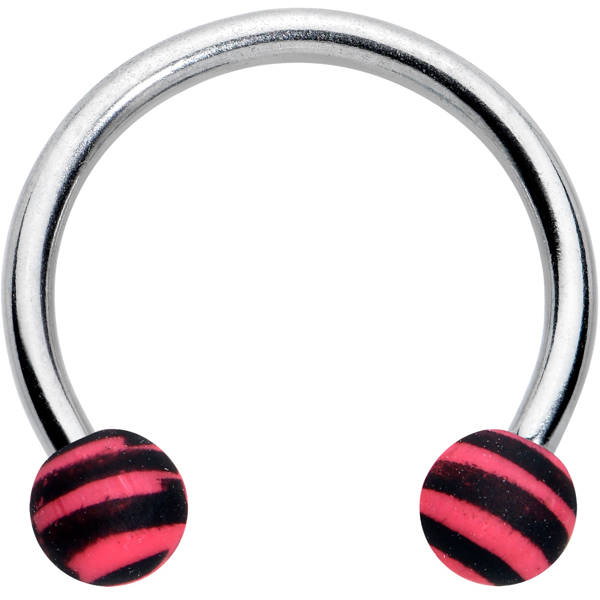 16G 3/8 Matte Pink Zebra Stripe Ends Horseshoe Circular Barbell