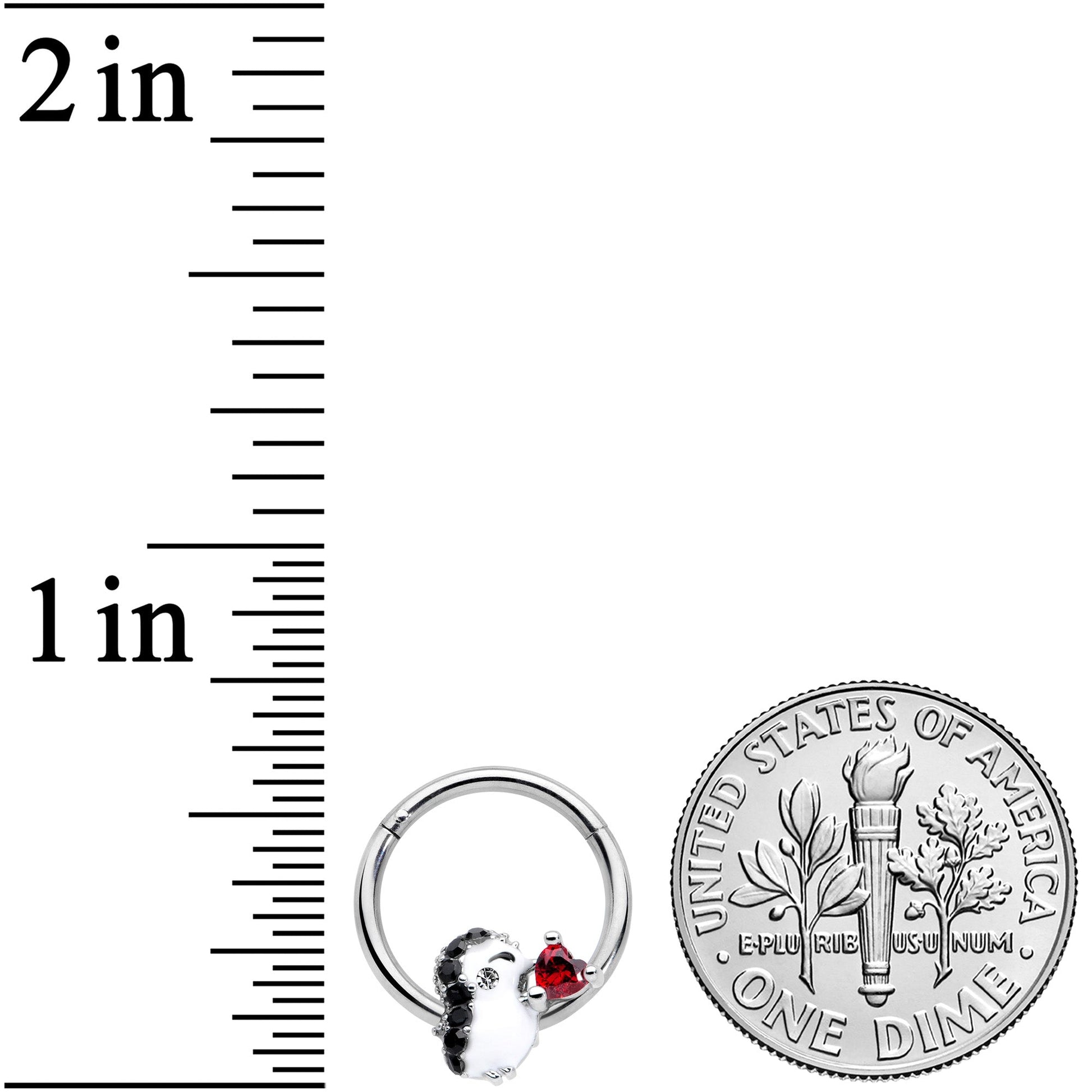 16G 3/8 Red Gem Penguin Heart Valentines Day Hinged Segment Ring