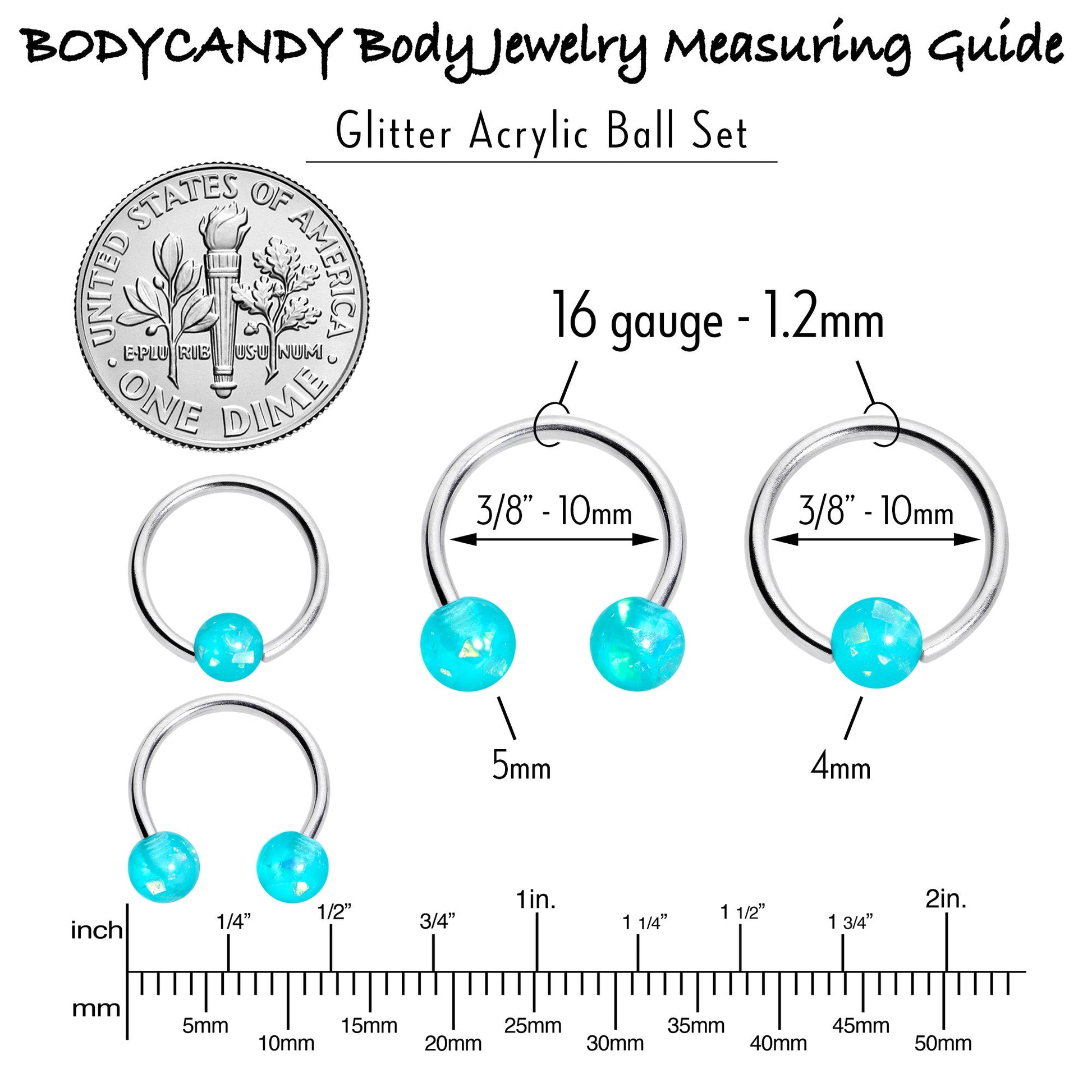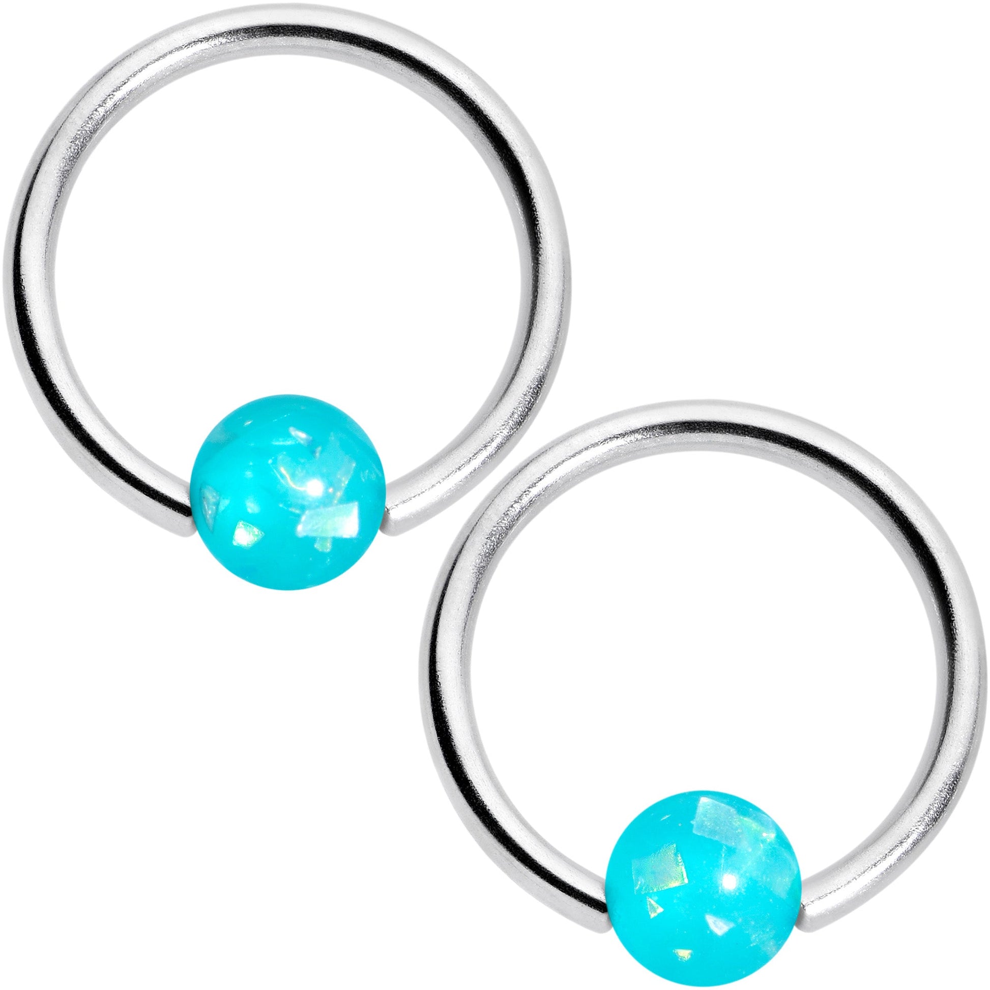 16 Gauge 3/8 Teal Faux Opal Horseshoe BCR Captive Ring Set of 4
