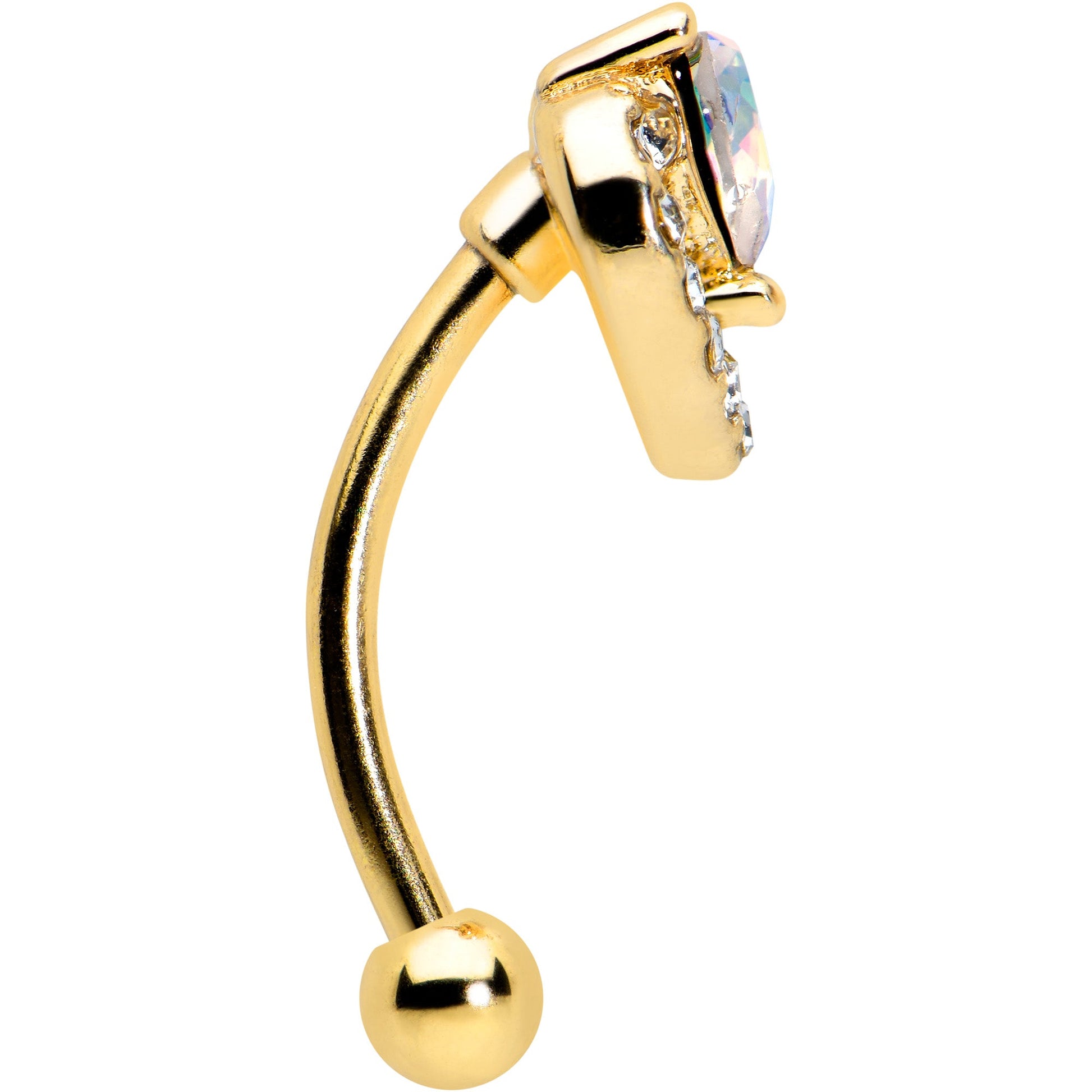 16 Gauge 5/16 Aurora Gem Gold Tone Rococo Heart Curved Eyebrow Ring