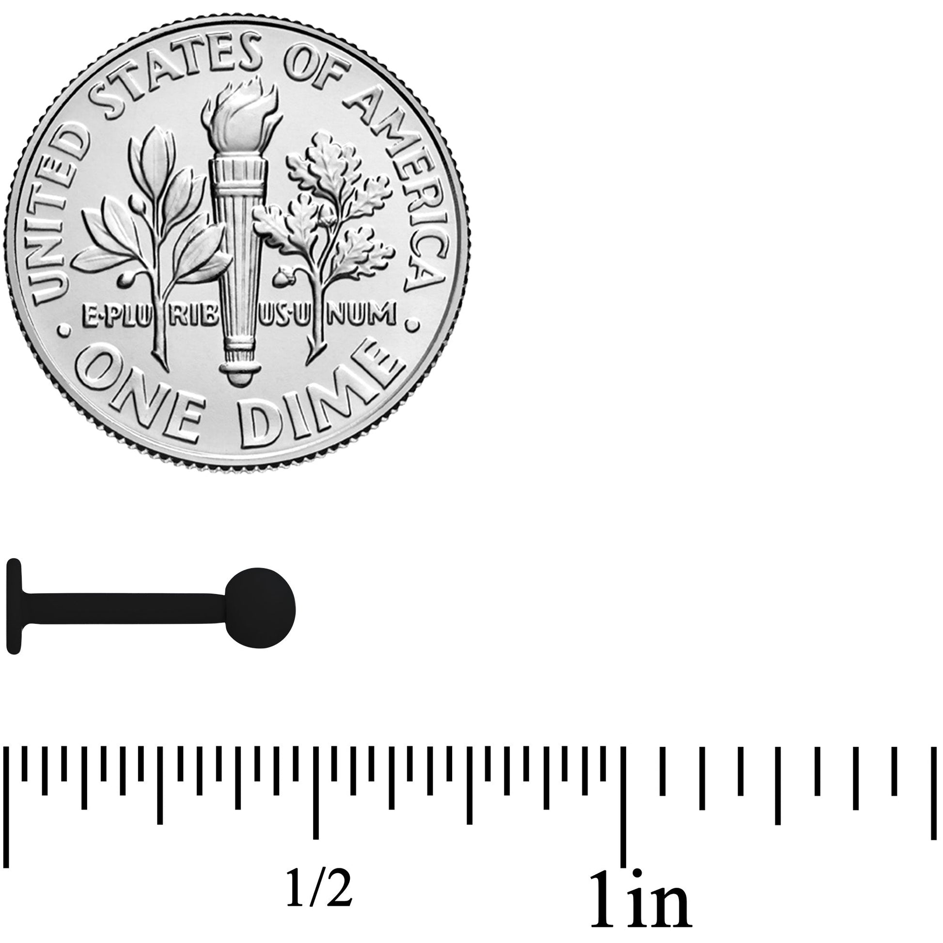 Give your cartilage piercing a touch of color with an understated effect with this 16 gauge lip ring! It's made with an 8mm black matte plated over 316L surgical grade stainless steel straight barbell with a flat disc end. The other end features a matching 4mm black matte acrylic ball end. And you can rock this beauty in multiple piercings including your lip and monroe as well as cartilage piercings like the helix, tragus, and some conch piercings! If you want a look that won't get lost in the crowd or overwhelm your style, this elegant black cartilage jewelry is exactly what you're after!Specifications