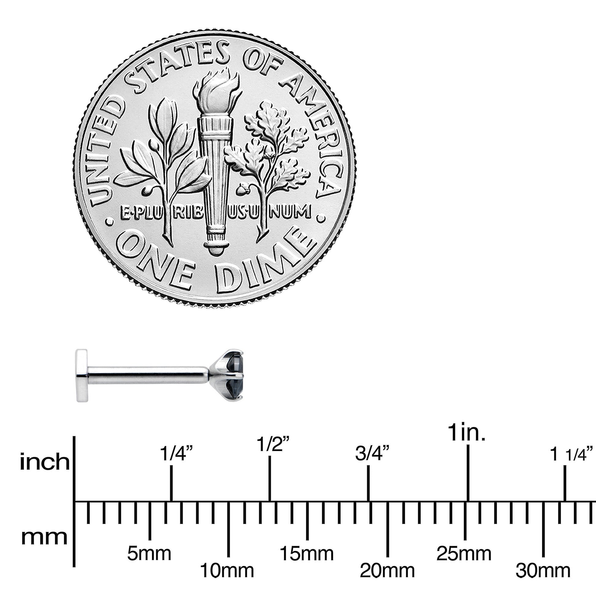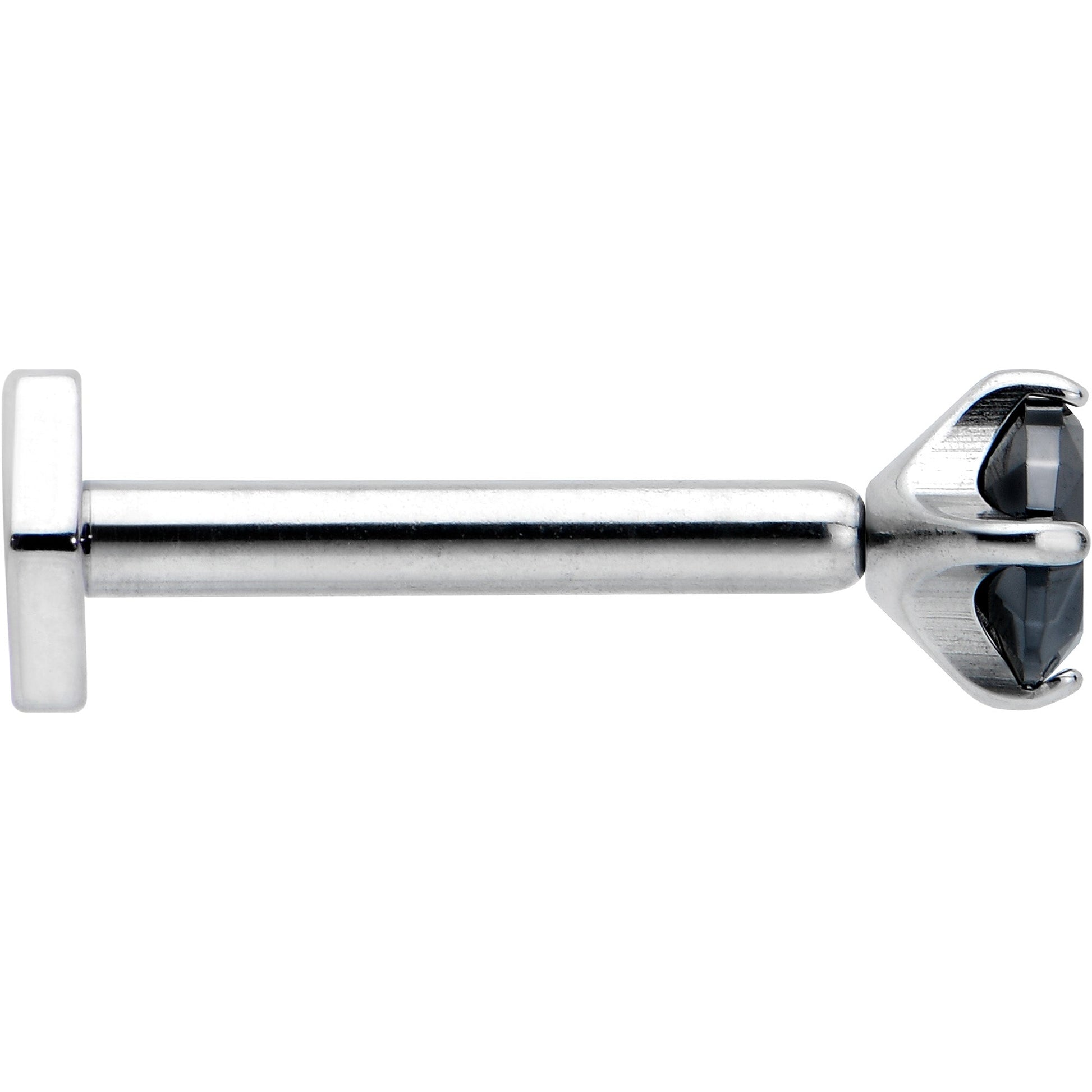 Your cartilage piercings will have twice the style with this 16 gauge lip ring! It's made with an 8mm ASTM F-136 titanium straight post. The front end features a black cubic zirconia gem in a pronged setting and a threadless design that makes insertion and removal a snap! The back end features a hexagon shape, for a charming change from the standard disc shape. You can even rock this jewelry in multiple piercings including lip, monroe, tragus, helix, and some conch piercings. With such an endearing style and such thoughtful details, this is one cartilage ring you'll never want to remove!Specifications