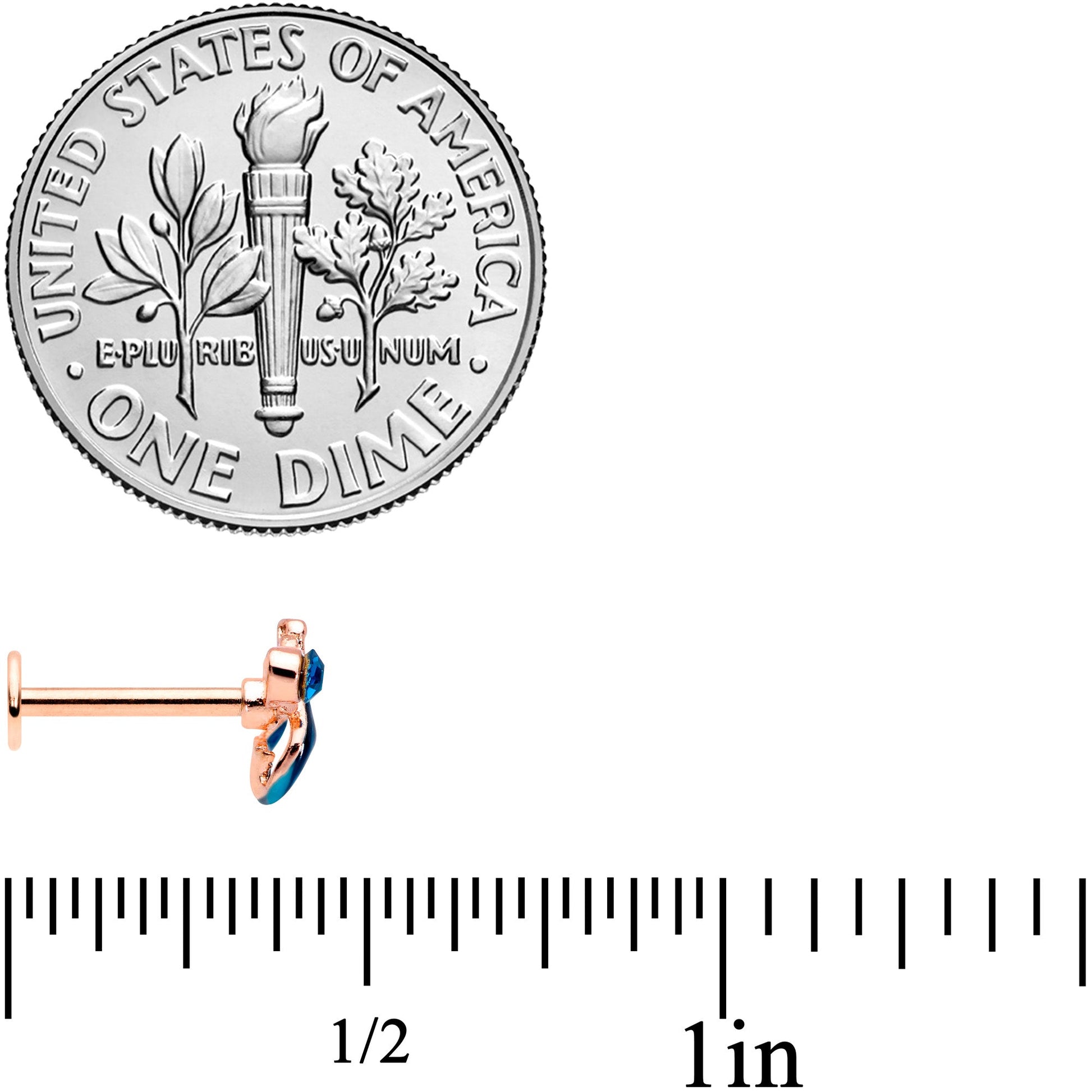 16 Gauge 5/16 Blue Gem Rose Gold Tone Mermaid Labret Monroe Tragus