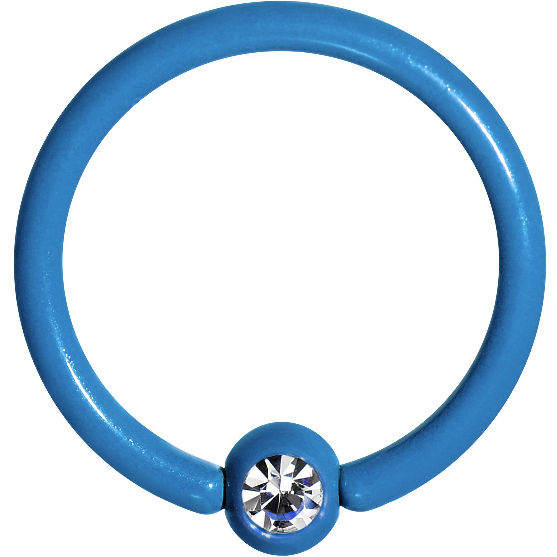 Hypoallergenic jewelry for sensitive skin. ,16 Gauge 5/16" Clear Gem Blue Acrylic Over Steel Captive Ring