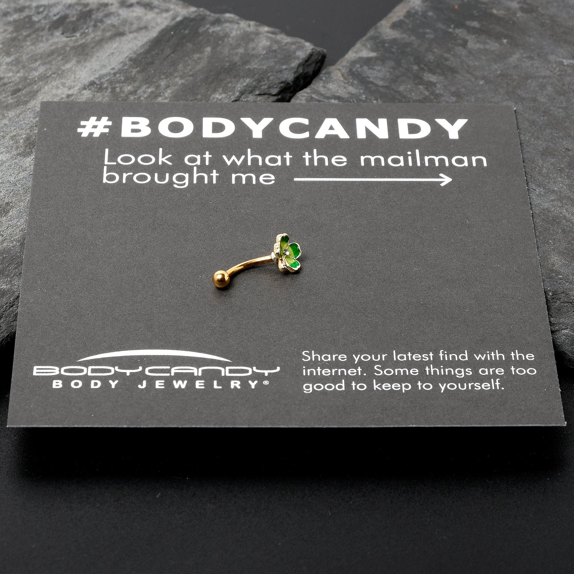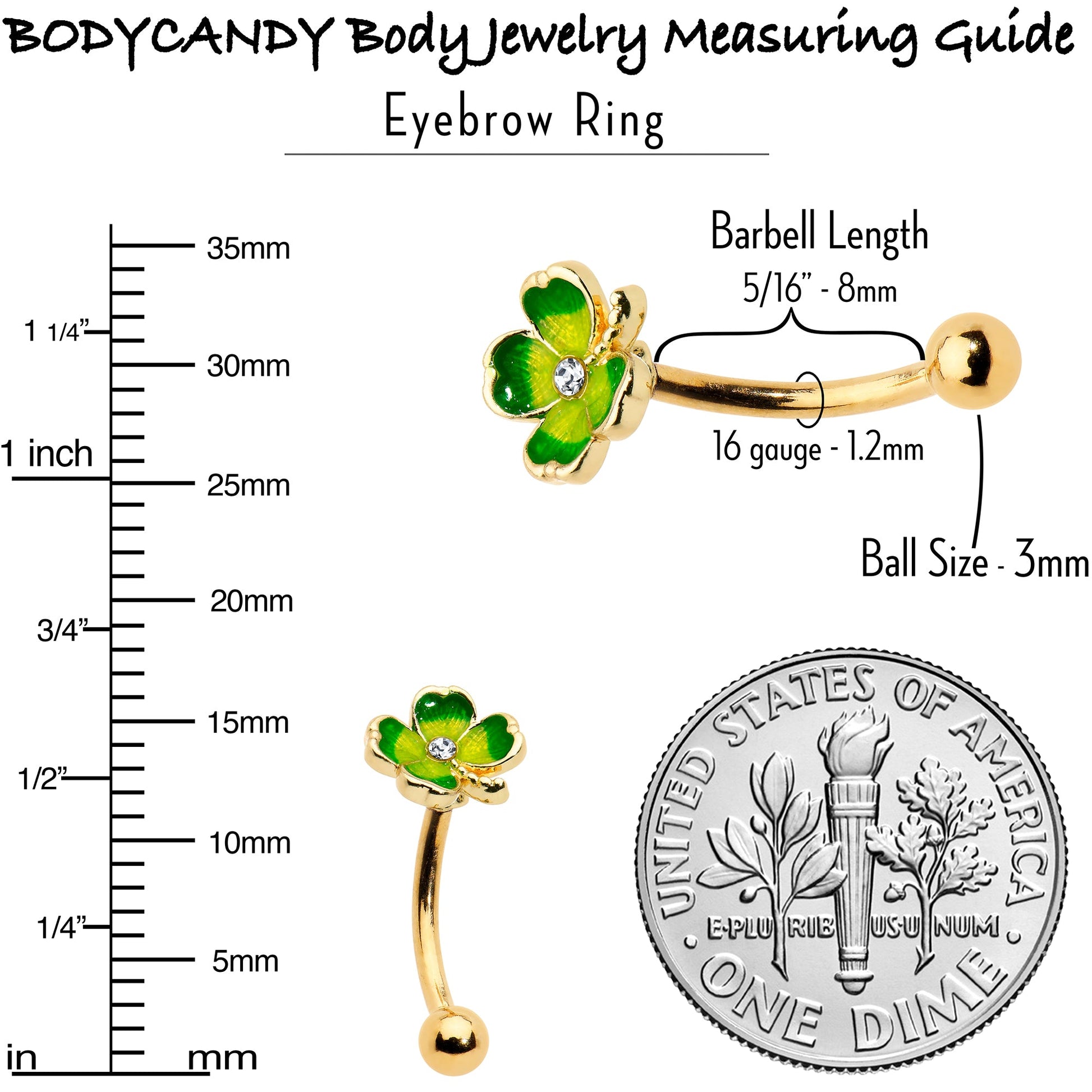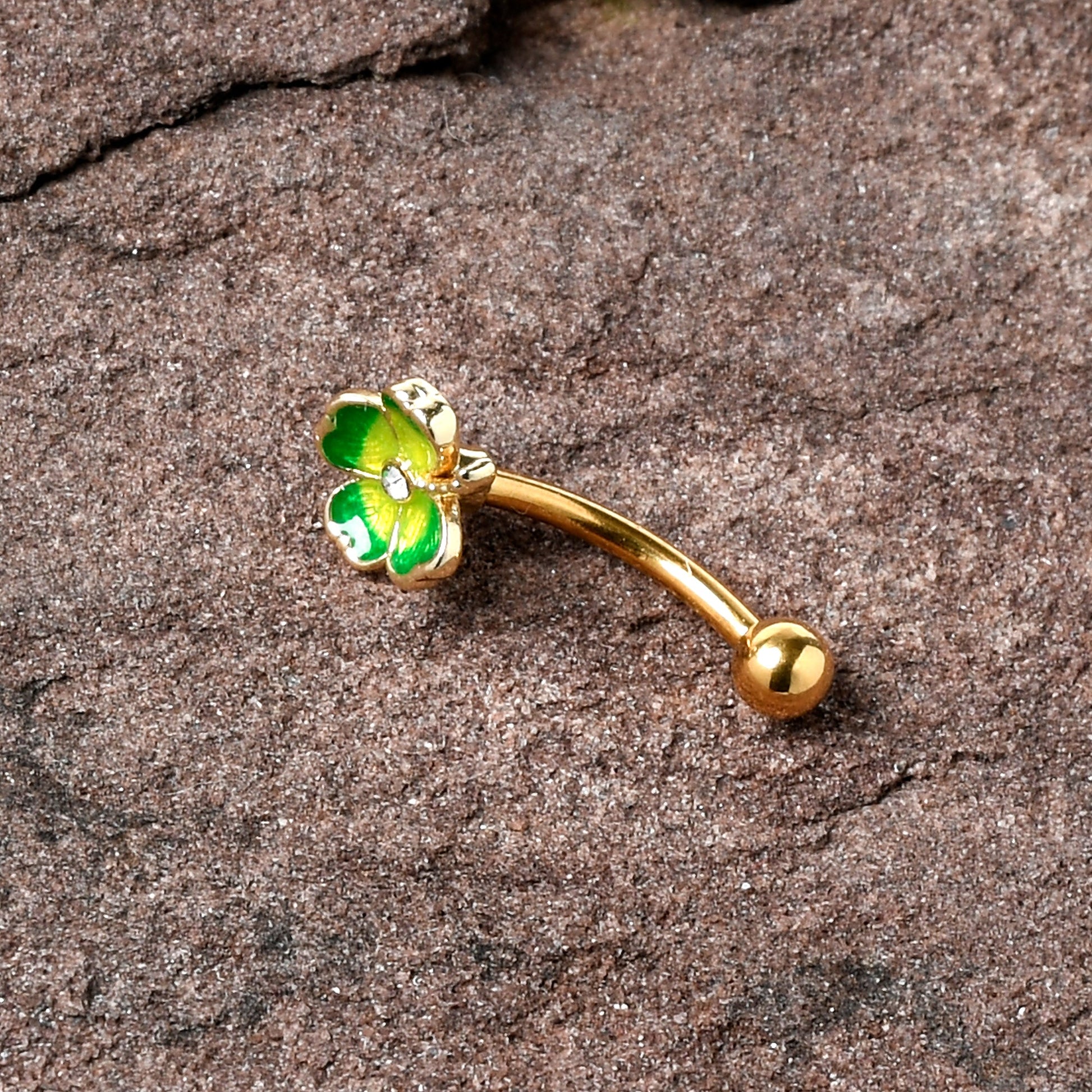 16 Gauge 5/16 Clear Gem Gold Tone Lucky Shamrock Curved Eyebrow Ring