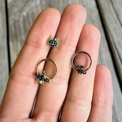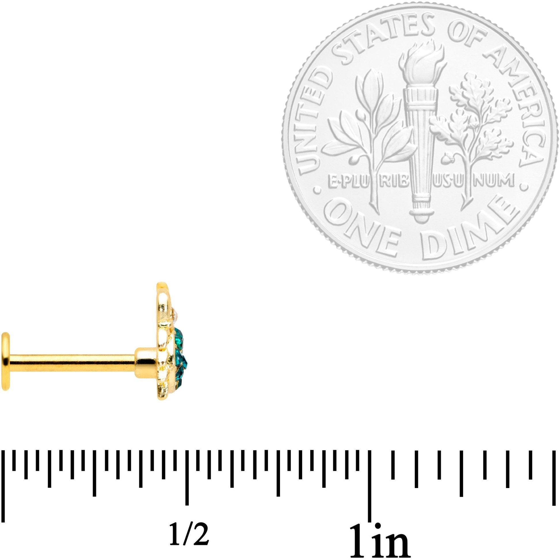 This little fella has crawled up from the ocean depths and is making his way to your cartilage piercings as fast as he can! This 16 gauge labret stud is made with an 8mm gold tone PVD over 316L surgical grade stainless steel post. It features our crabby critter with clear gems for eyes and his back set with deep green gems. This tragus stud works well in multiple piercings including facial piercings like the labret and monroe as well as cartilage piercings like the helix, tragus, and conch.Specifications