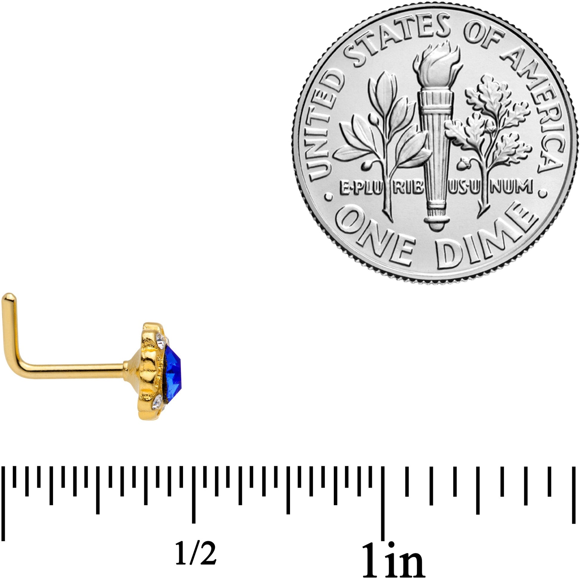 18 Gauge 5/16 Clear Blue Gem Gold Tone Regal L Shaped Nose Ring