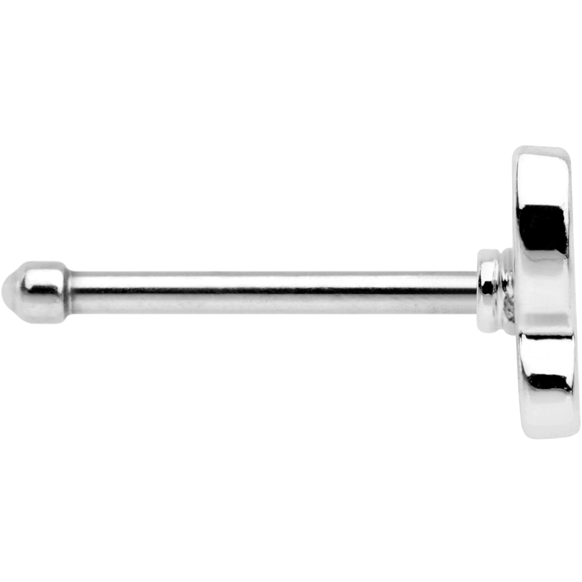 Flap and soar through life with this cute little flapping butterfly nose piercing. A clear CZ gem encrusted butterfly sits at the end of this 20 gauge nose bone piercing. The silver tone butterfly is mounted on a 1/4" straight barbell made with durable 316L surgical grade stainless steel.