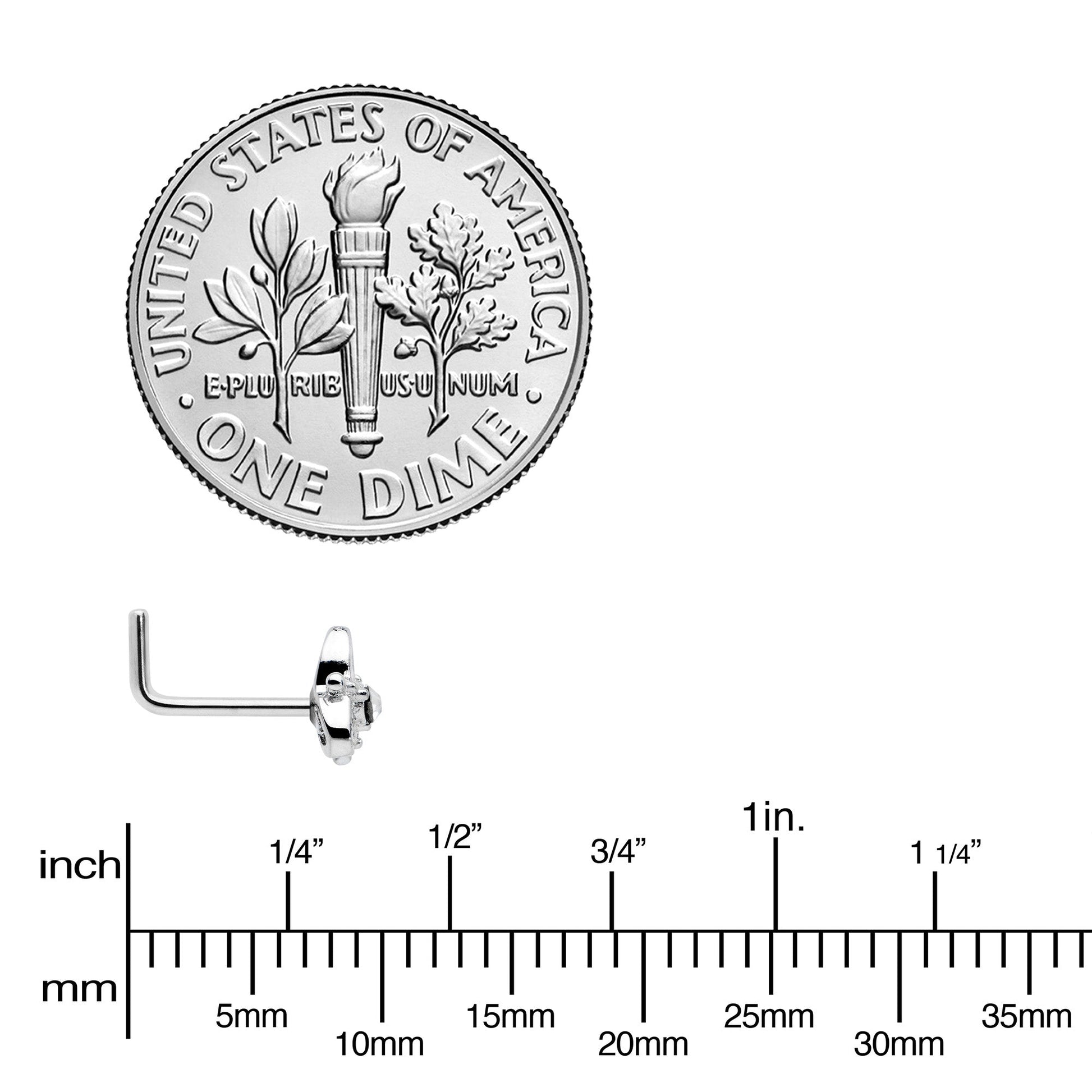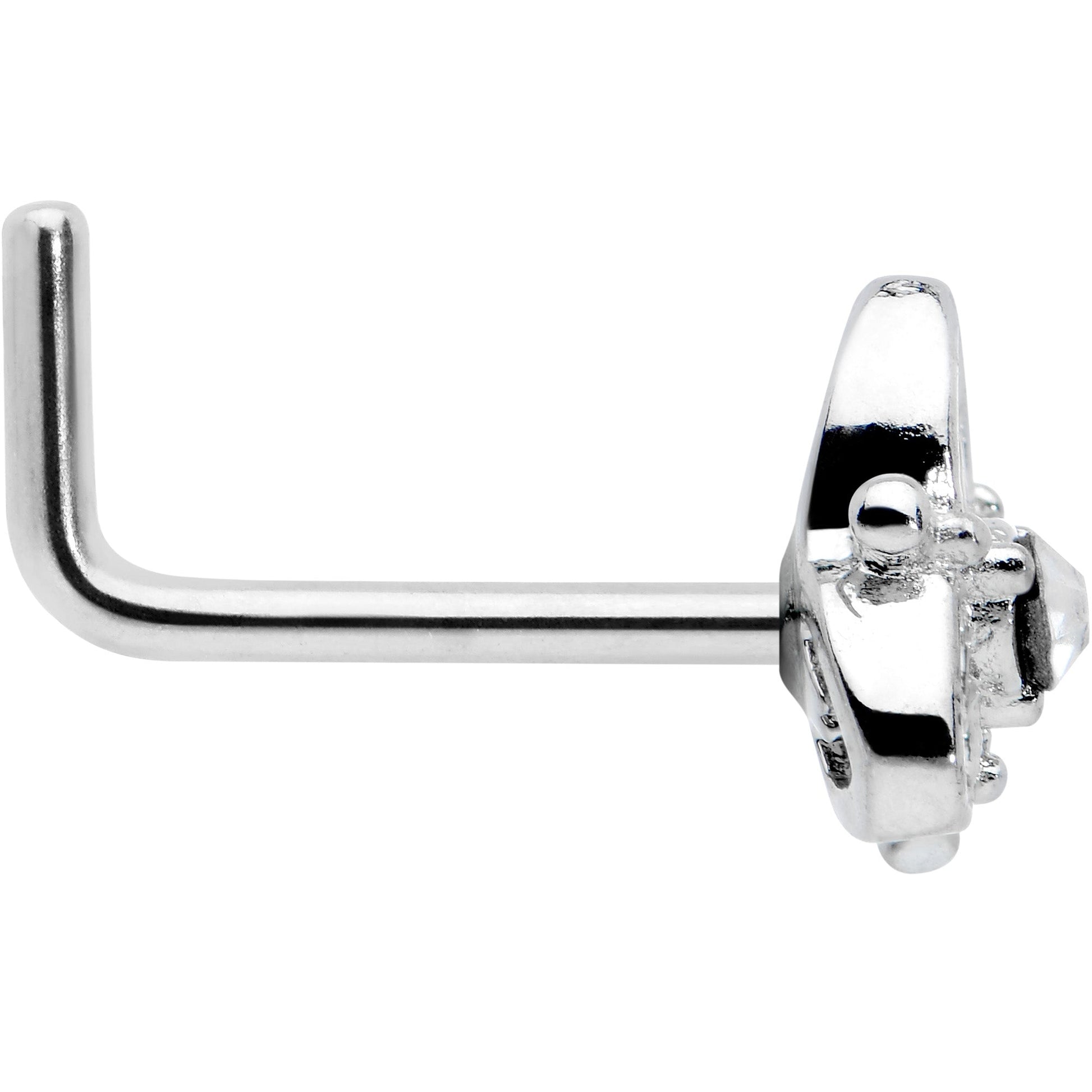 If you love Celtic designs, show it off with this 20 gauge nostril ring! It's made with a 6mm length at the bend 316L surgical grade stainless steel L-shaped post. It features a triquetra charm, composed of a trio of hearts and further embellished with a clear cubic zirconia gem at the center. You can't help but fall in love with this striking Celtic-inspired nose piercing jewelry!Specifications
