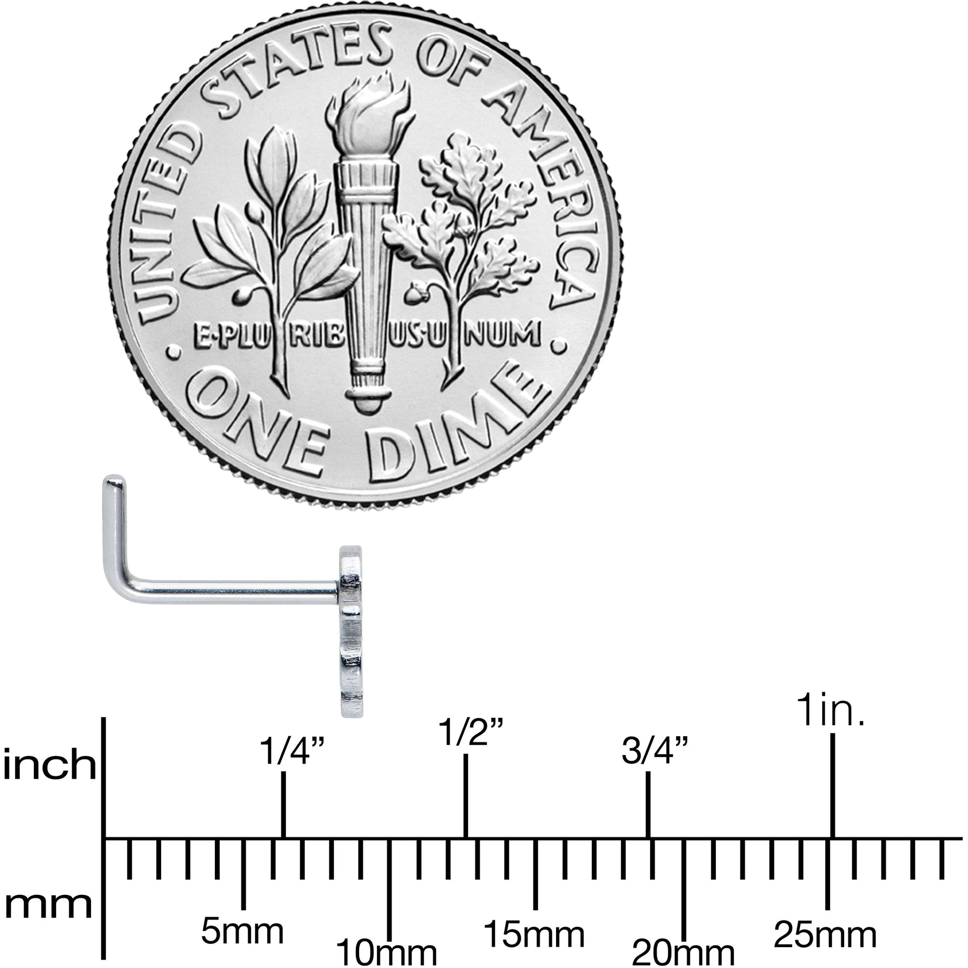 20 Gauge (.8mm), 1/4" (6mm) Length at the Bend, 316L Surgical Grade Stainless Steel L-Shaped Post