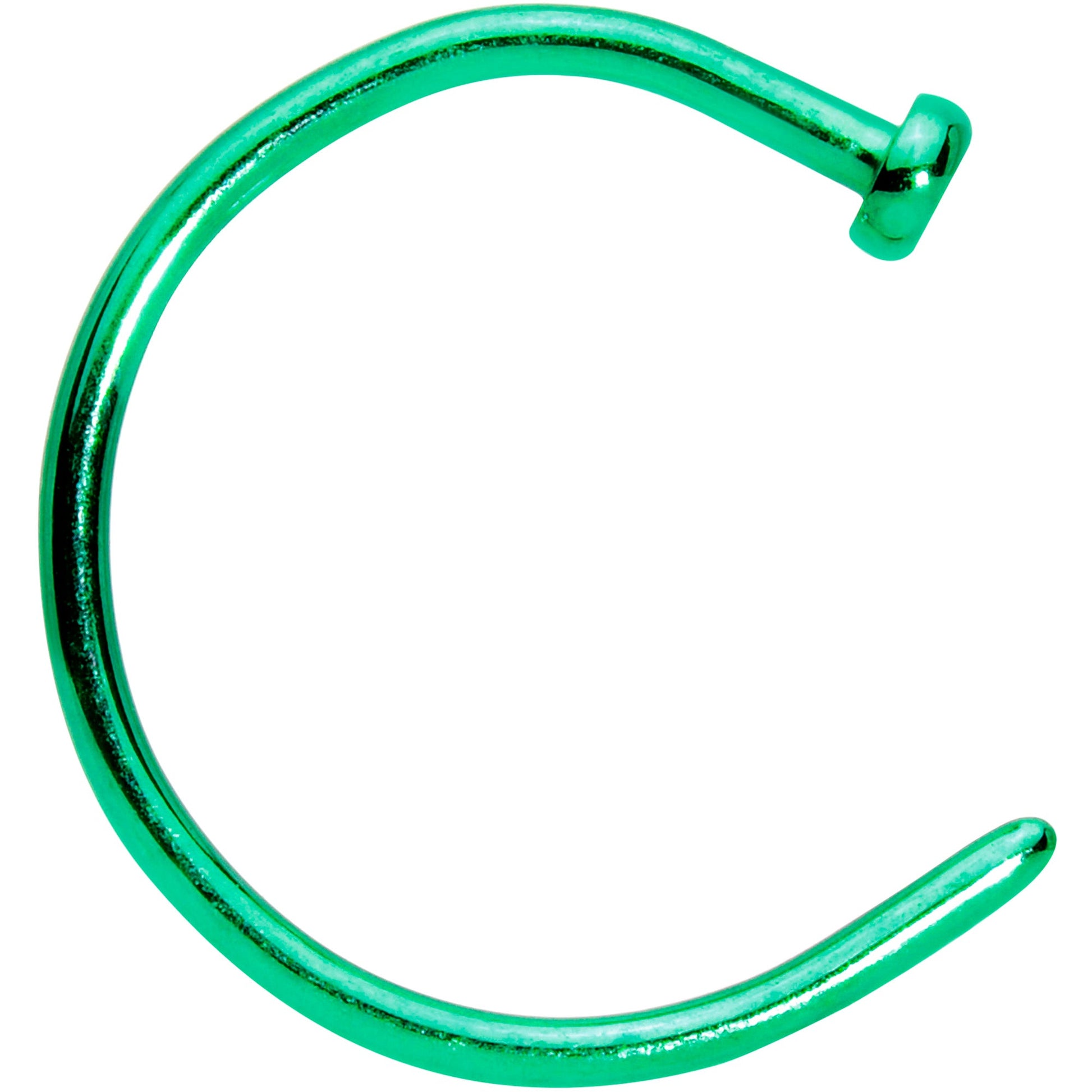 Sometimes the simple things in life are the best. Made of a green PVD over solid grade 23 implant grade titanium circular ring, this 20 gauge nostril ring is built for comfort as well as serious durability. It measures 10mm length and has a flat top to rest comfortably against your nostril so you'll barely notice that it's there. Simple beauty and simple comfort mean you're going to simply love it!Specifications