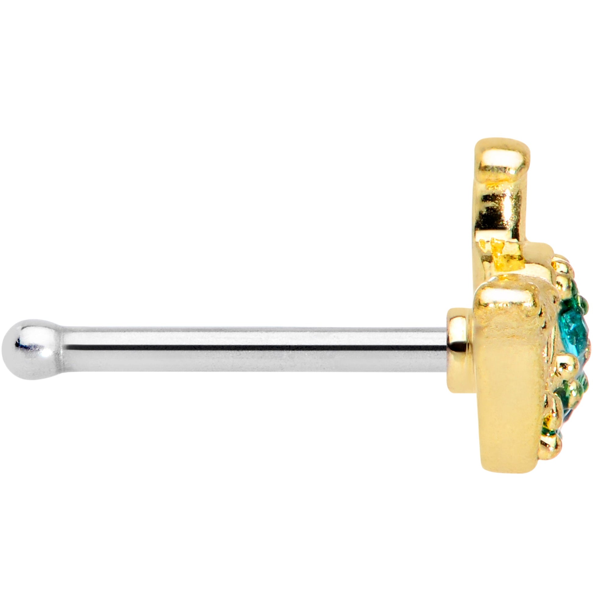 20 Gauge 5/16 Aqua Gem Gold Tone Water Whale Nose Bone