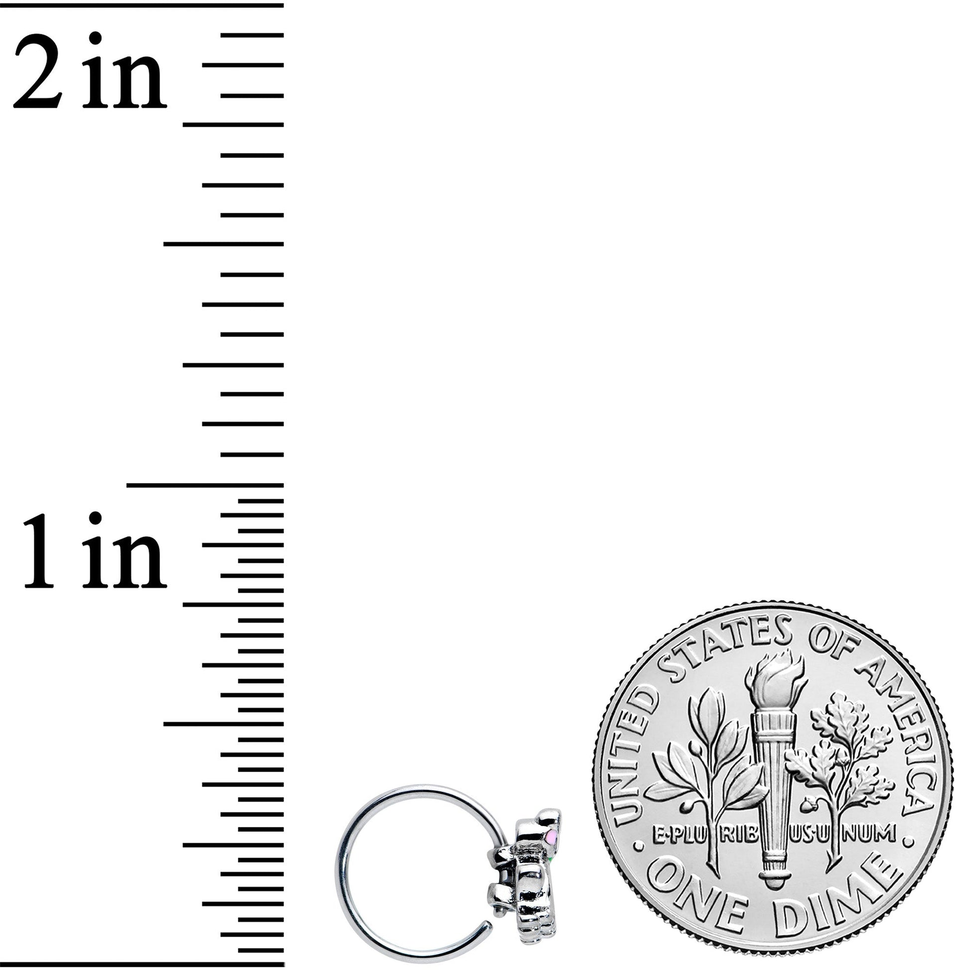 You'll be feeling groovy when you're rocking this 20 gauge nostril ring! It's made with an 8mm durable 316L surgical grade stainless steel circular ring. It features a frog charm, with the body embellished in dark green and black embellishments for eyes. This frog even has a charming smile and a bashful blush! Get groovy in dark green with this awesome amphibian nose piercing jewelry!Specifications