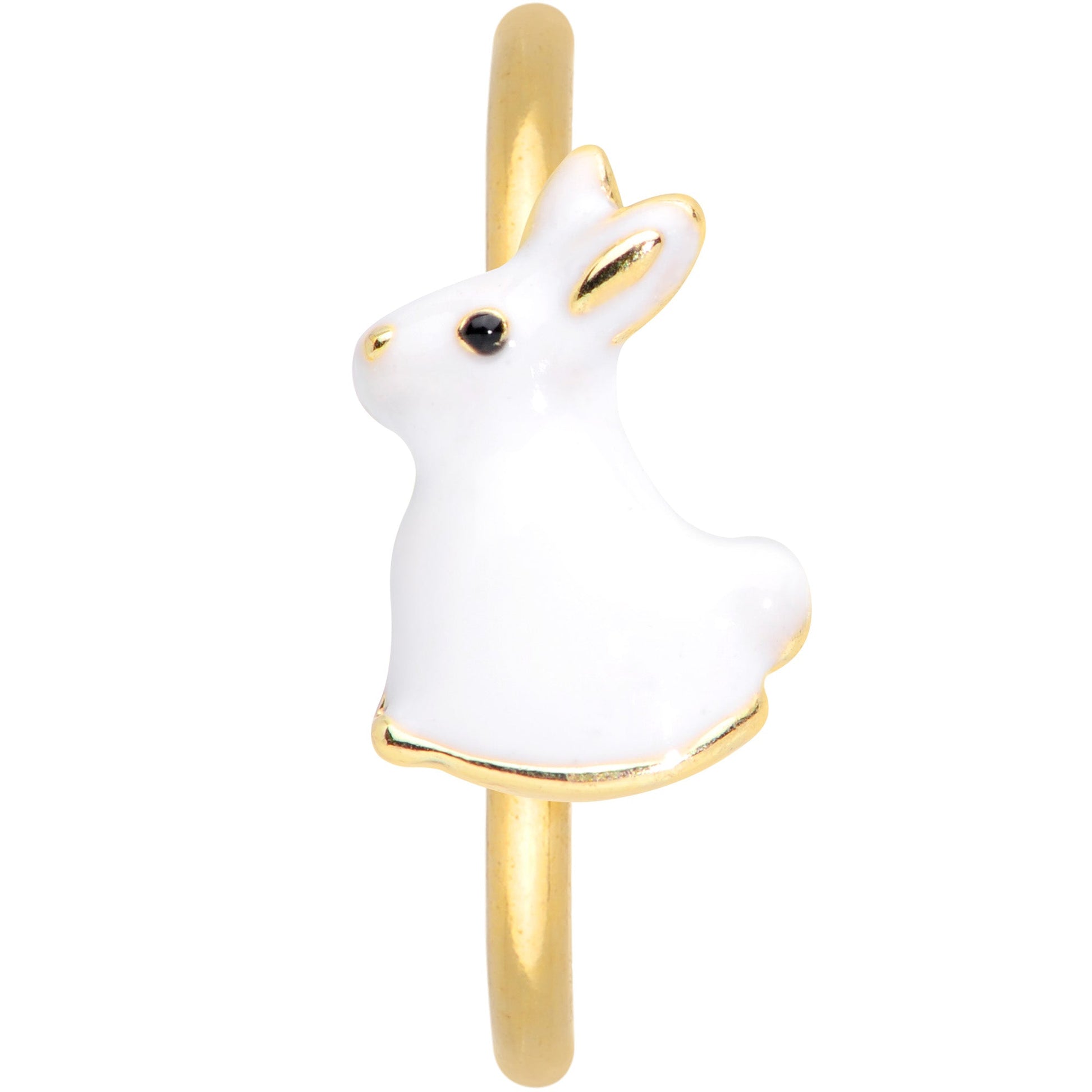 20G 5/16 Gold Tone White Rabbit Easter Bunny Nose Hoop