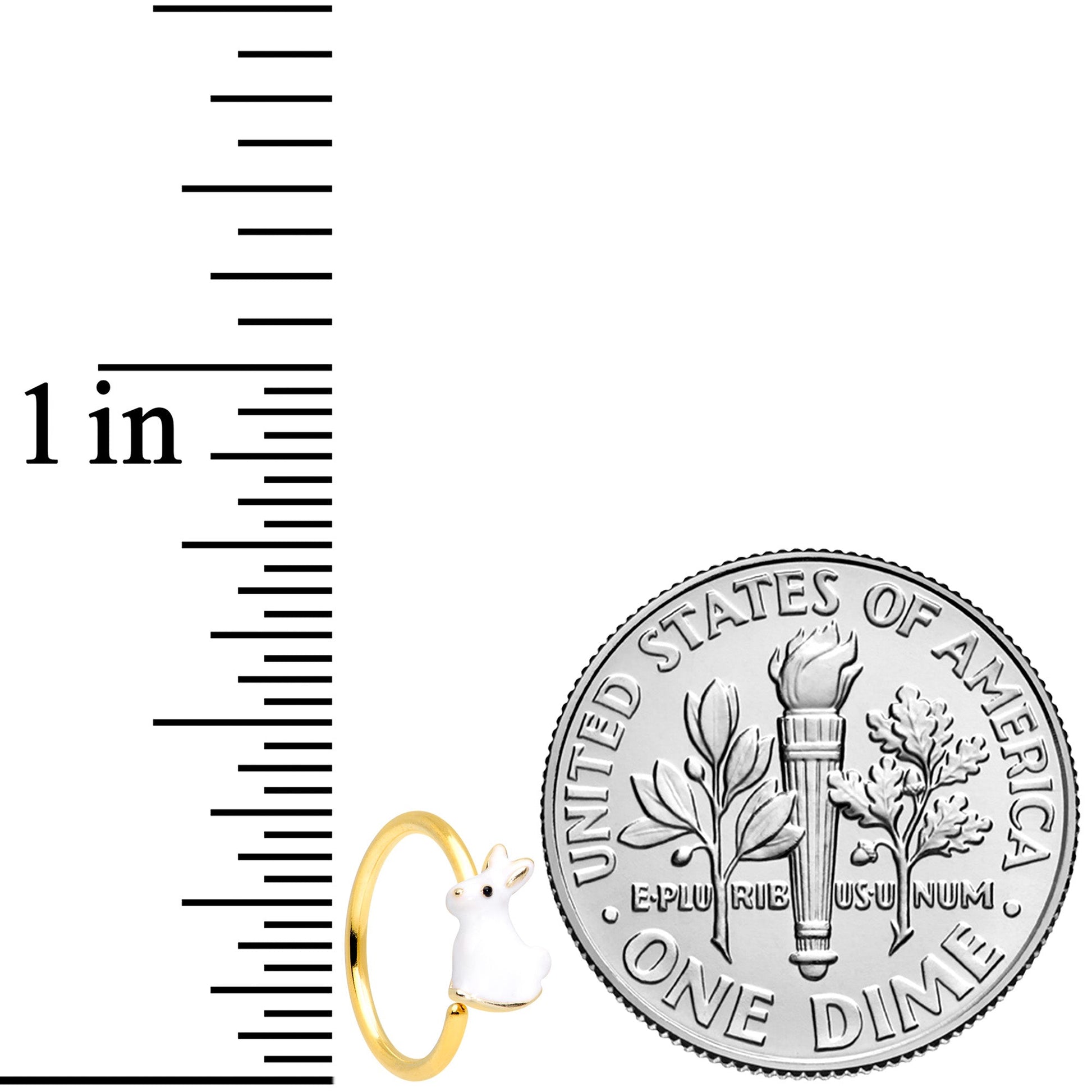 20 Gauge 5/16 Gold Tone White Rabbit Easter Bunny Nose Hoop