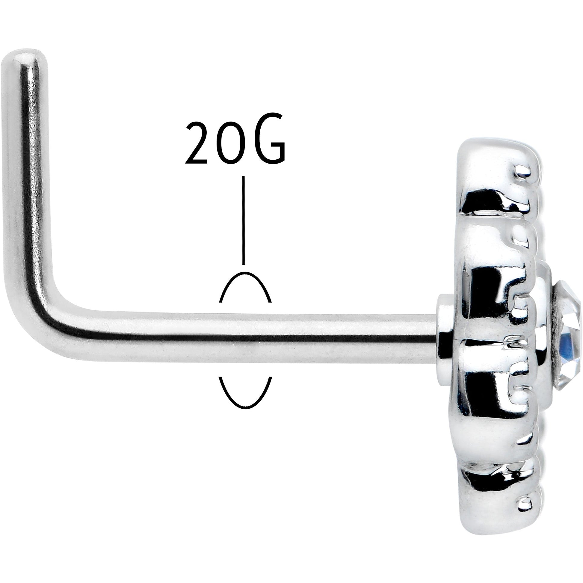 20 Gauge 7mm Clear Gem Epic Fabulous Flower L Shape Nose Ring