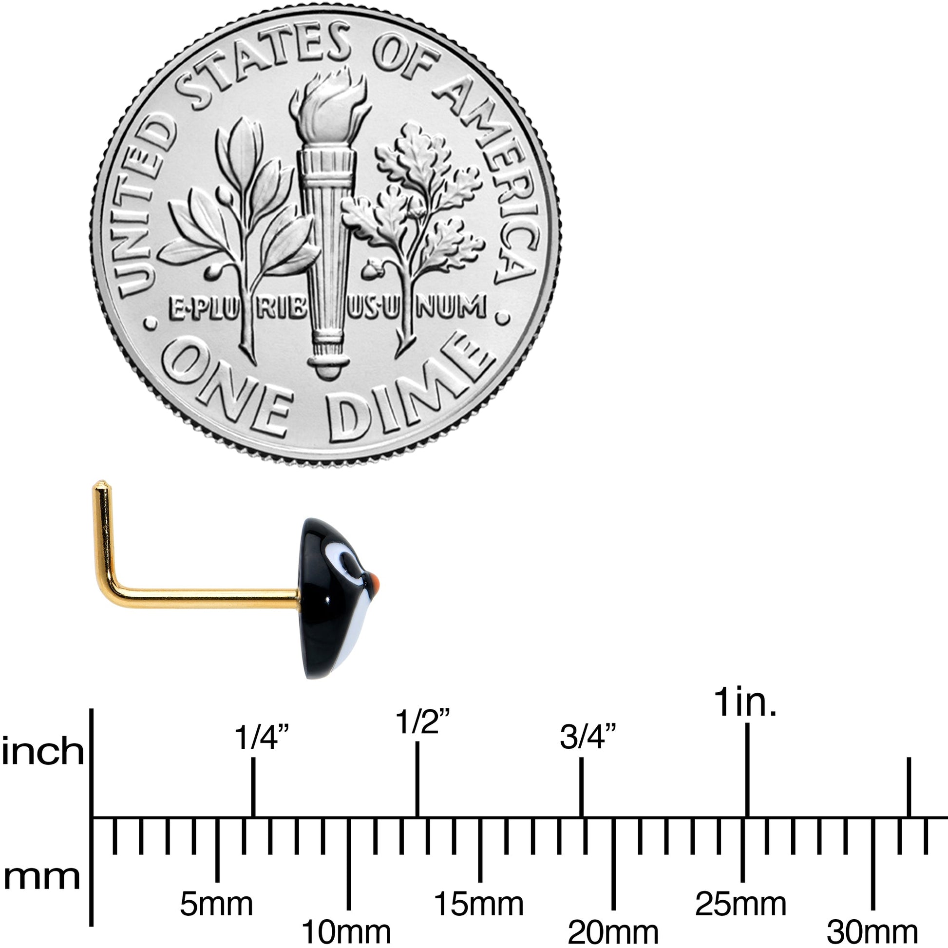 20 Gauge 7mm Gold Tone Round Penguin Face Holiday L Shape Nose Ring