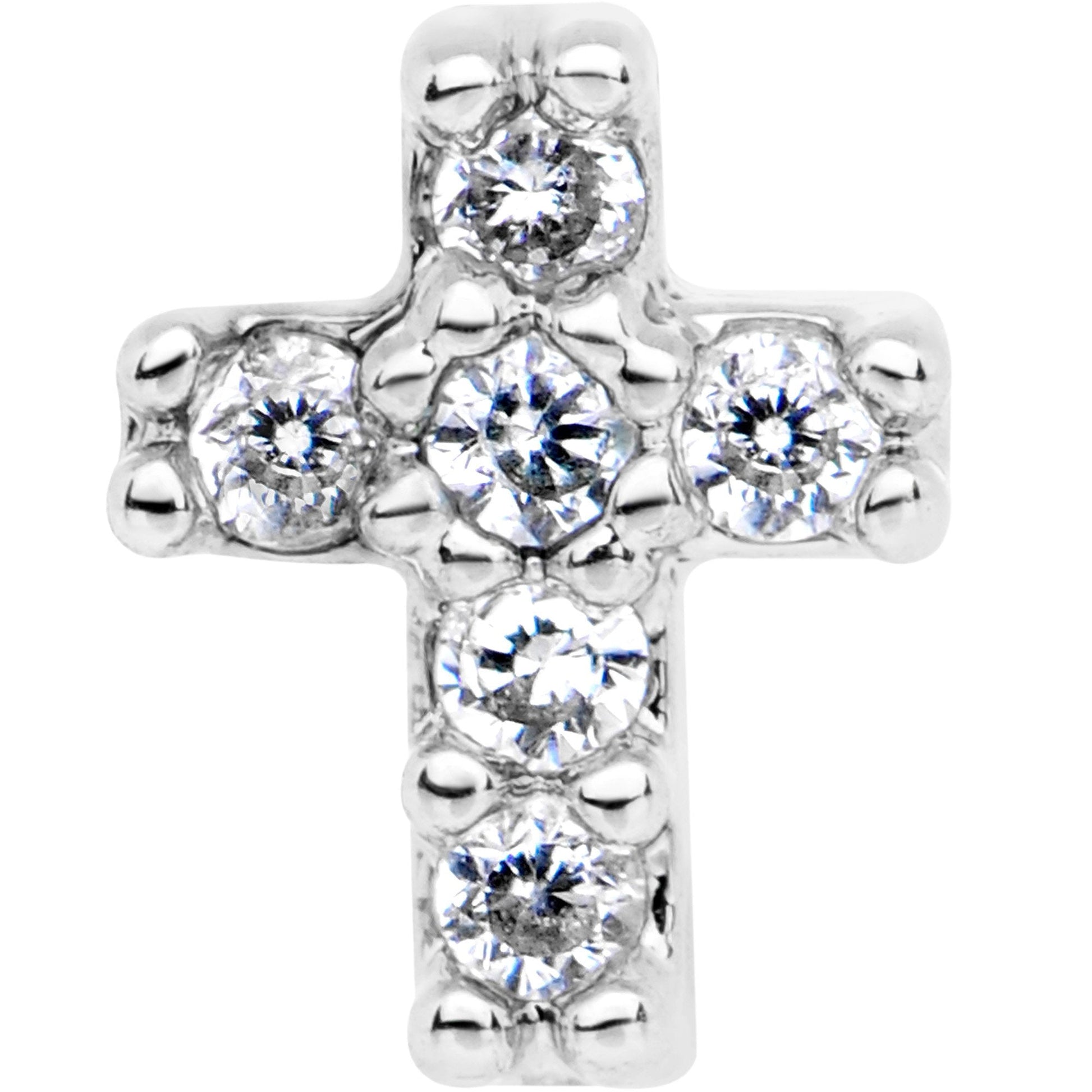 If you love bold beauty and simple style then you will love to wear this pretty 16 gauge labret piercing. Made with a 5/16" internally threaded 316L surgical grade stainless steel straight barbell, this flatback labret piercing features a cross charm decorated with a cluster of clear cubic zirconia gems. Works in a variety of piercings including labret, monroe, tragus, and other cartilage piercings.