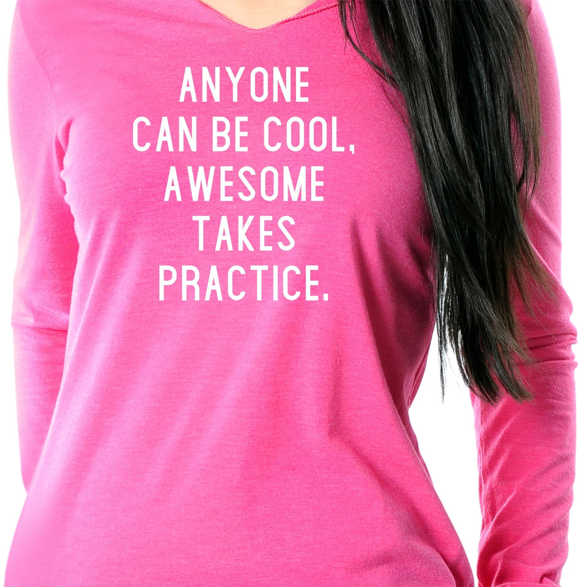 Let the world know that being this awesome takes practice whenever you wear Body Candy's 50/25/25 poly/ring spun combed cotton and rayon "Anyone can be cool, but awesome takes practice" v-neck hoodie. This soft and comfortable hoodie features shoulder to shoulder taping, a split v-neck with raw edge, and has a fitted style and is lightweight that is the perfect fusion of lightweight comfort and carefree style, combined into this fashionable pullover hoodie for women. The tri-blend fabric features colors that have a unique character and may have subtle variations in color.