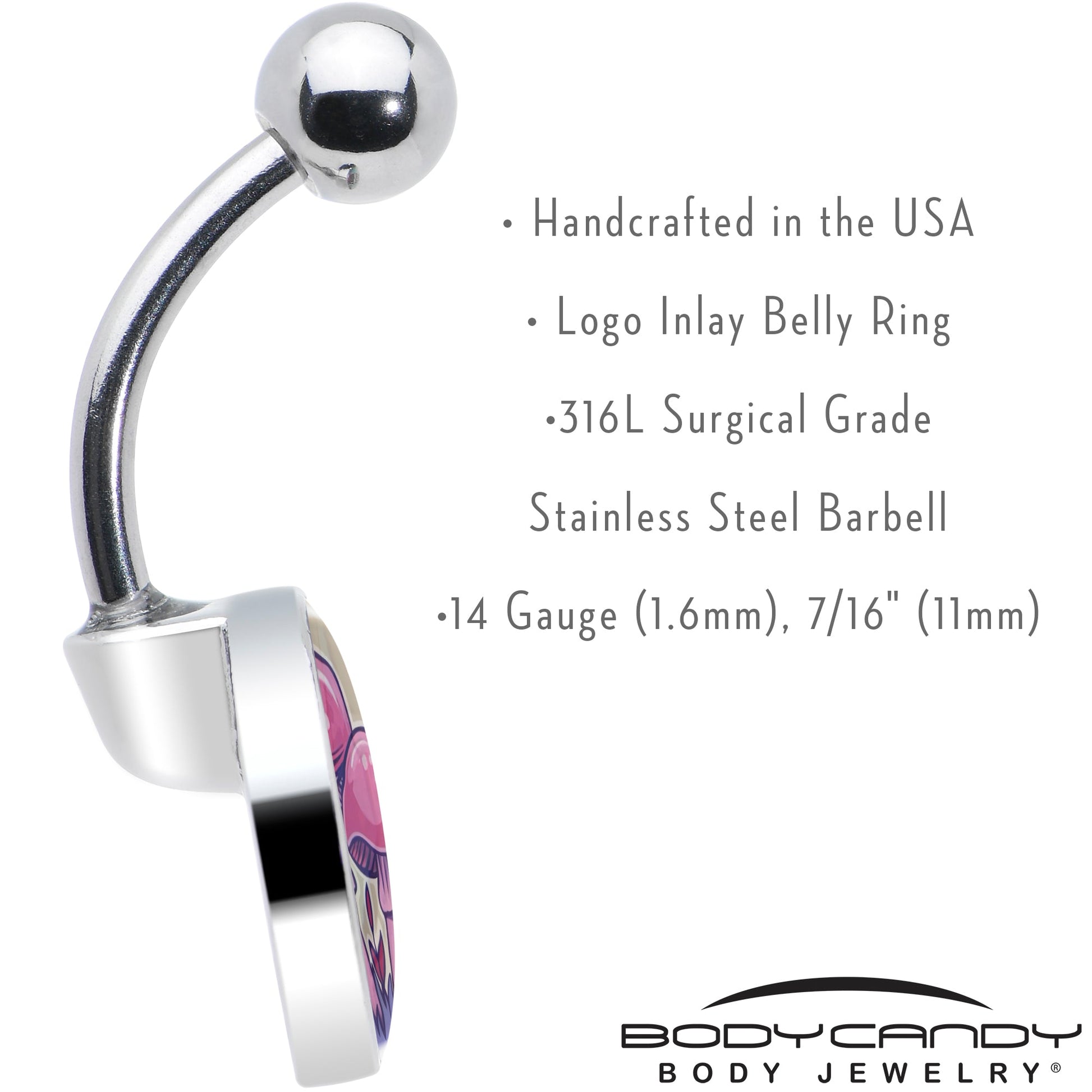 Hypoallergenic belly ring for sensitive skinArtist Drawn Pink Mushrooms Belly Ring