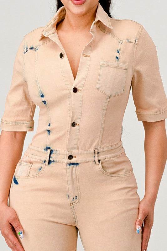 ATHINA WASHED DENIM HALF SLEEVE JUMPSUIT