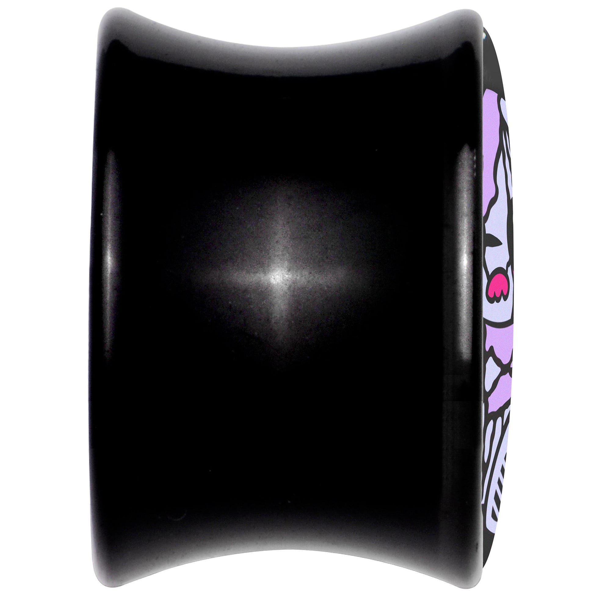These teddy bears are cuddly cute with an edge on these saddle plugs for stretched lobes. They're made with acrylic and feature a saddle design for comfortable insertion and removal. Each one features a black logo insert with a purple teddy bear. The teddy bears are scarred and missing an eye for a look that full of edgy attitude you can't help but want to cuddle. Give your ears a stylish snuggle with these punk teddy bear ear gauges. Sold as a set of two.