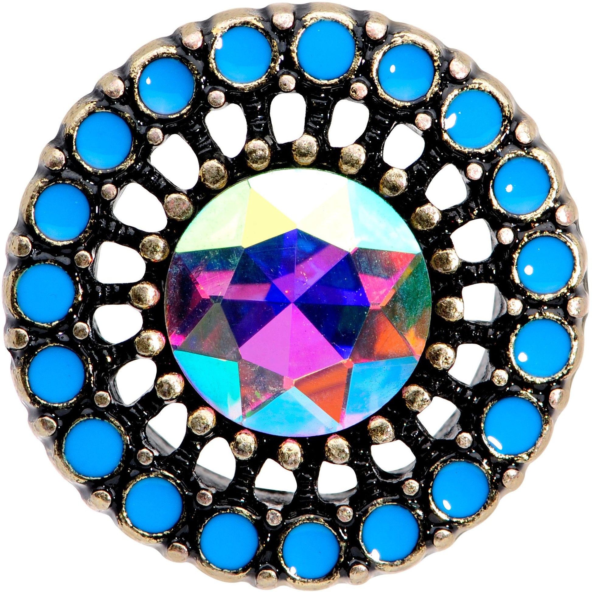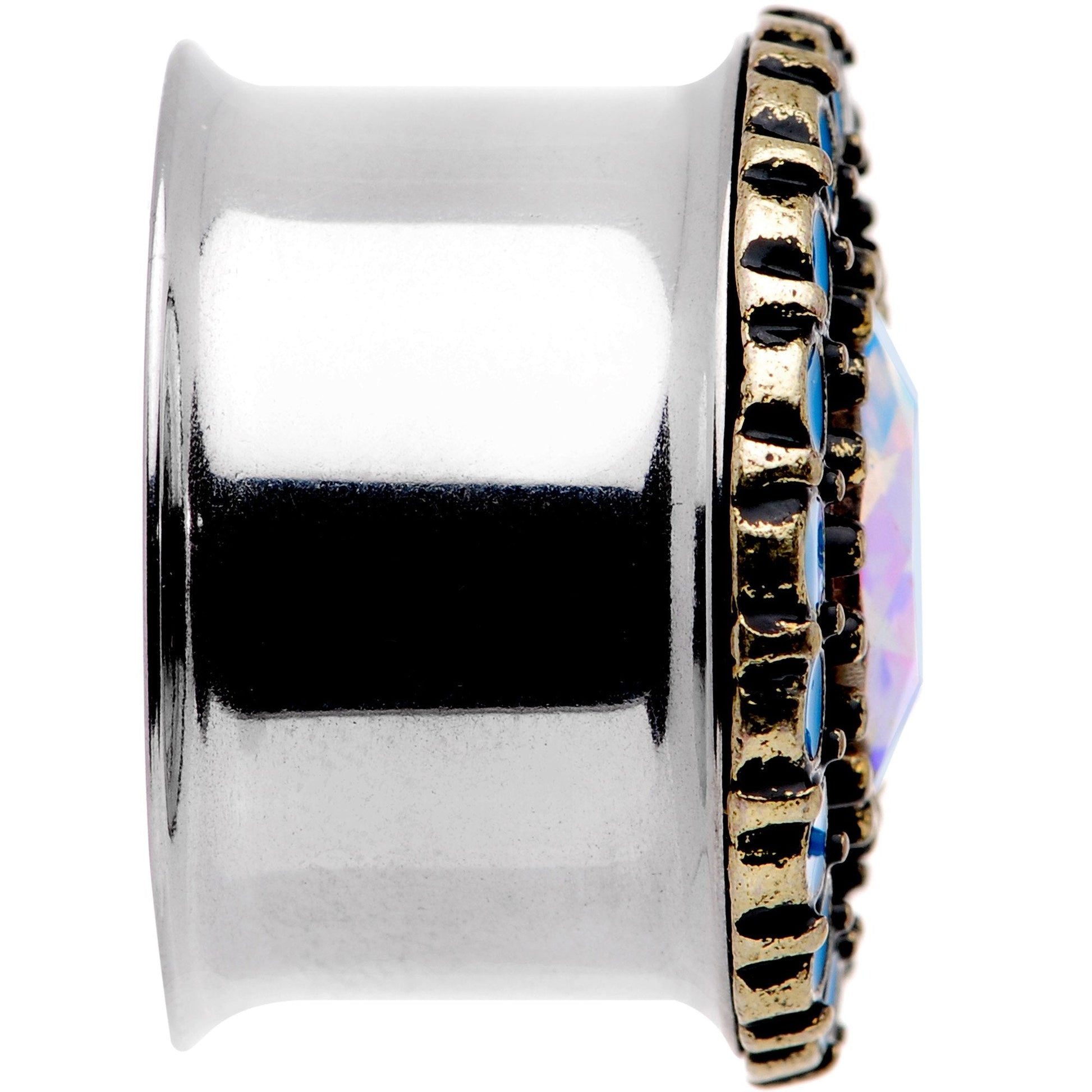 If you're a fan of brilliant blues and the hues of the sea then you will love this pair of pretty ear plugs. Made with durable 316L surgical grade stainless steel, these ear gauges feature a large center aurora gem surrounded by blue orbs for a feeling of being surrounded by beautiful ocean blues and are made with a double flare design for secure wear. Sold as a set of two.