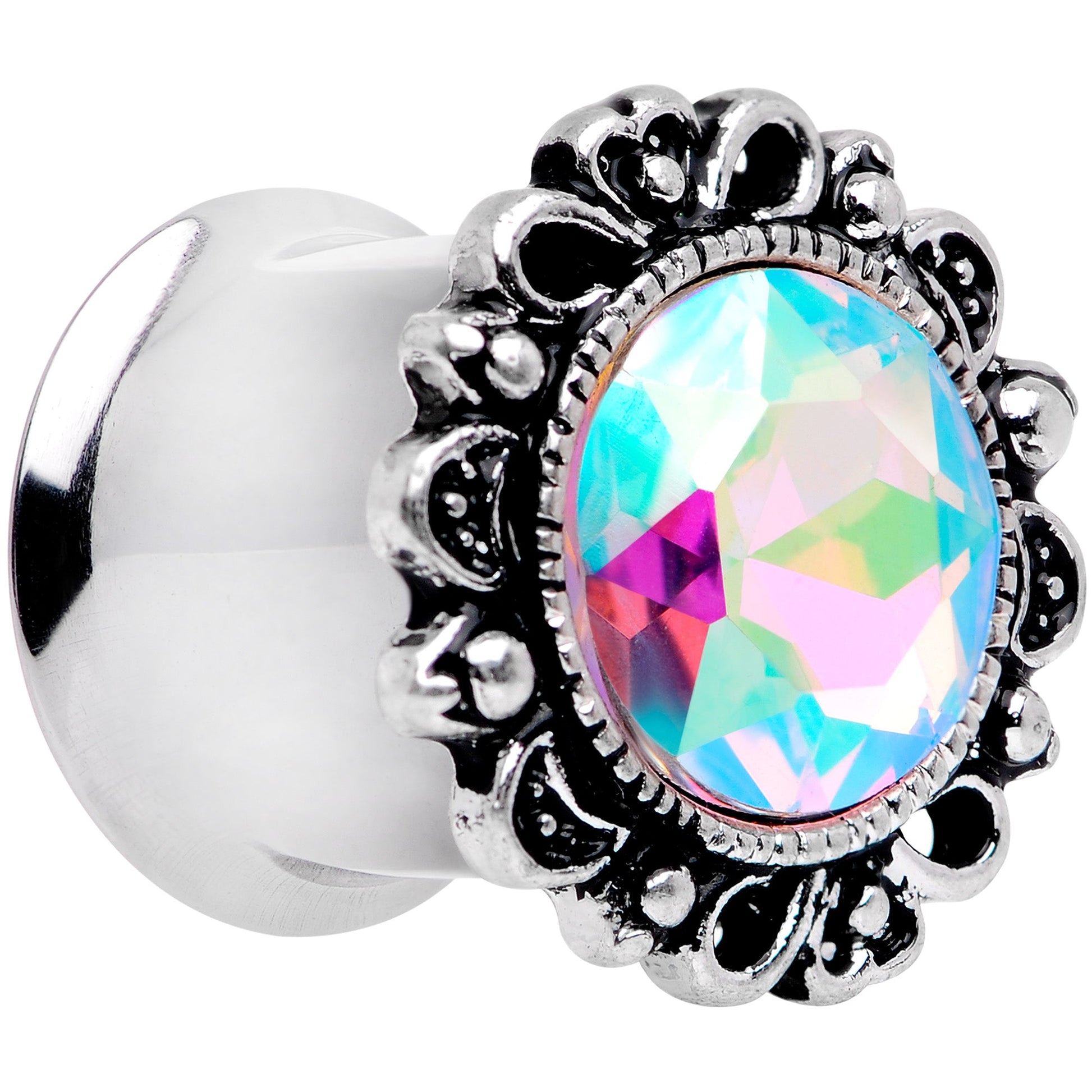 Aurora Gem Filigree Flower Double Flare Plug Set 2 Gauge to 1 Inch