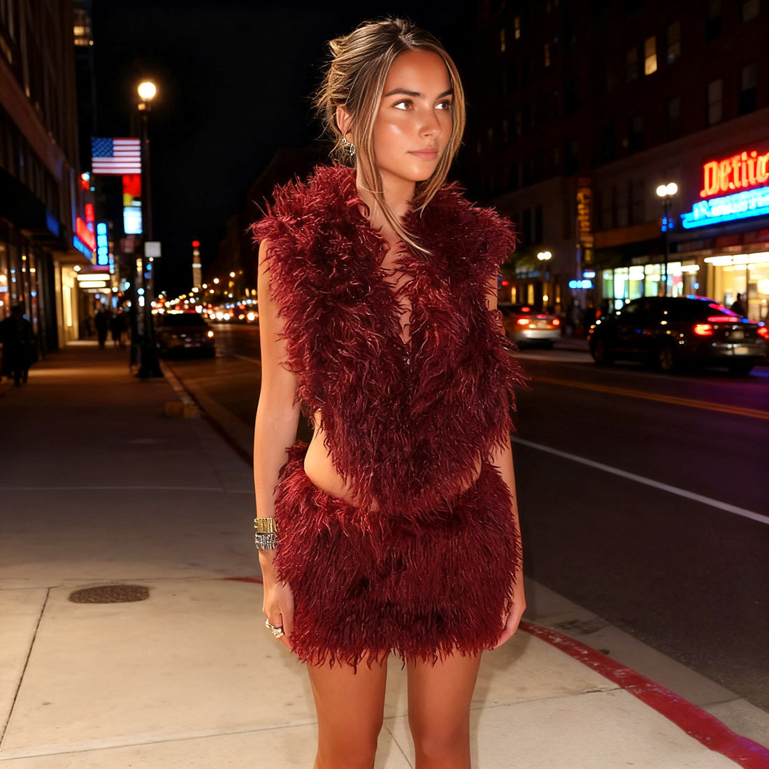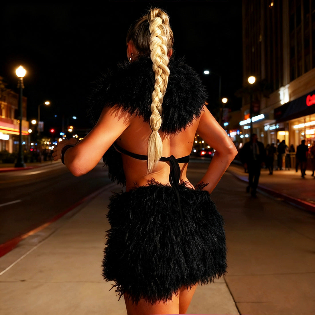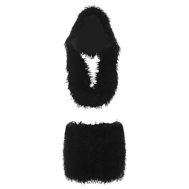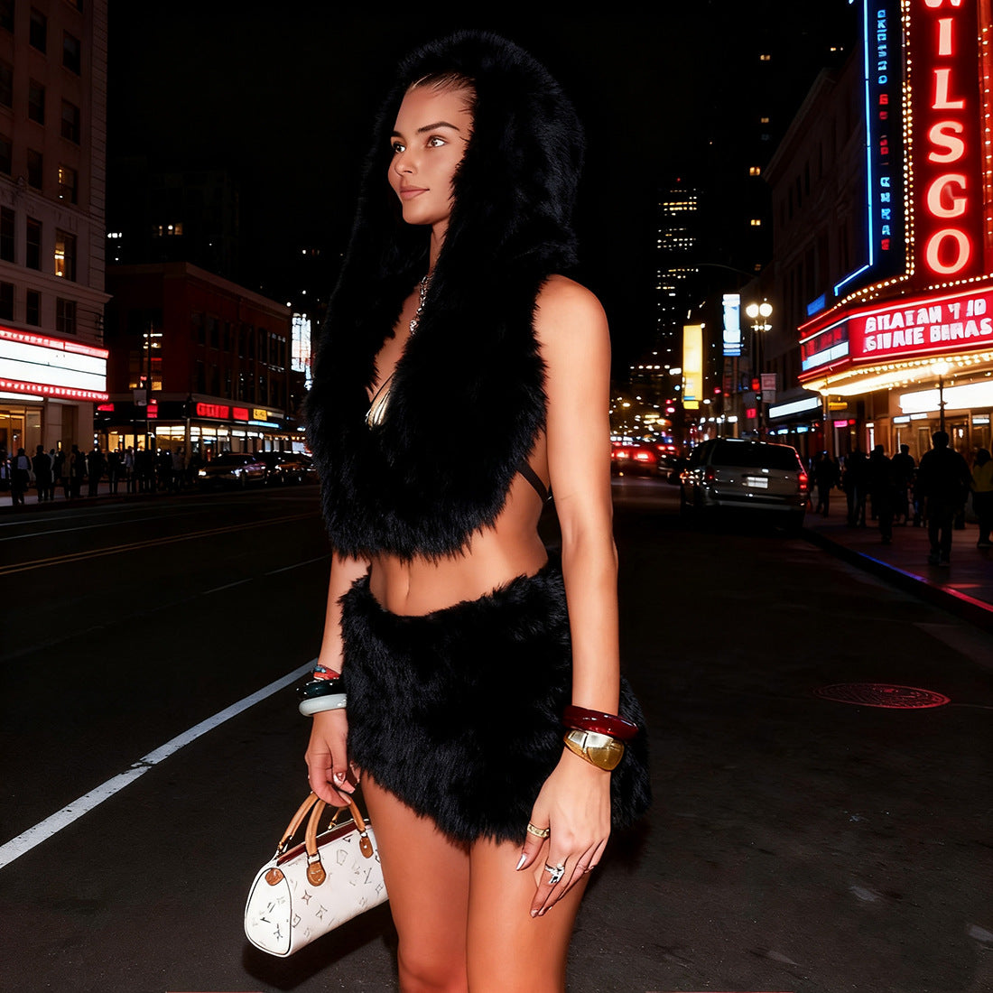 Autumn Backless Hooded Top Slimming Hip Skirt Solid Color Set for Women