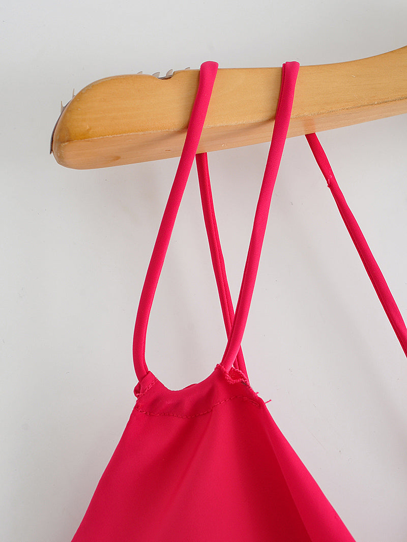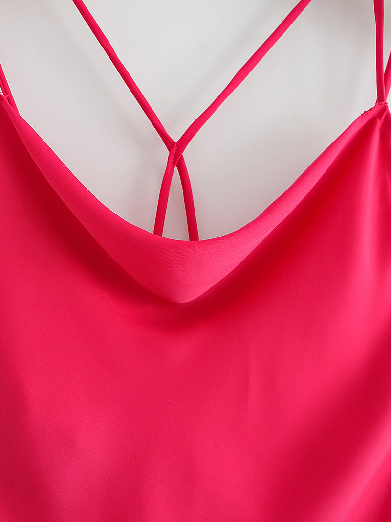 Autumn Sexy Red Silk Satin Texture Strap Dress