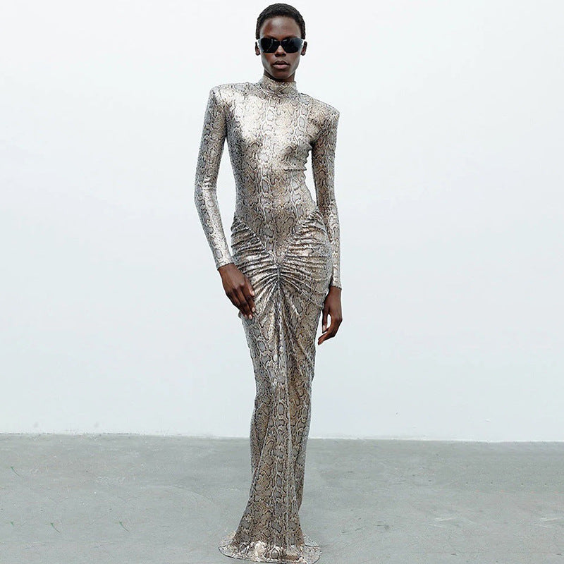 Autumn Slim round Neck Leopard Print Dress Long Sleeve Printed Dress Women Clothing