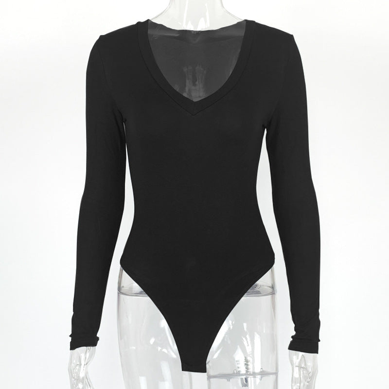 Autumn Winter Bottoming Shirt Tight Sexy Women Clothing Modal Long Sleeve V-neck Bodysuit