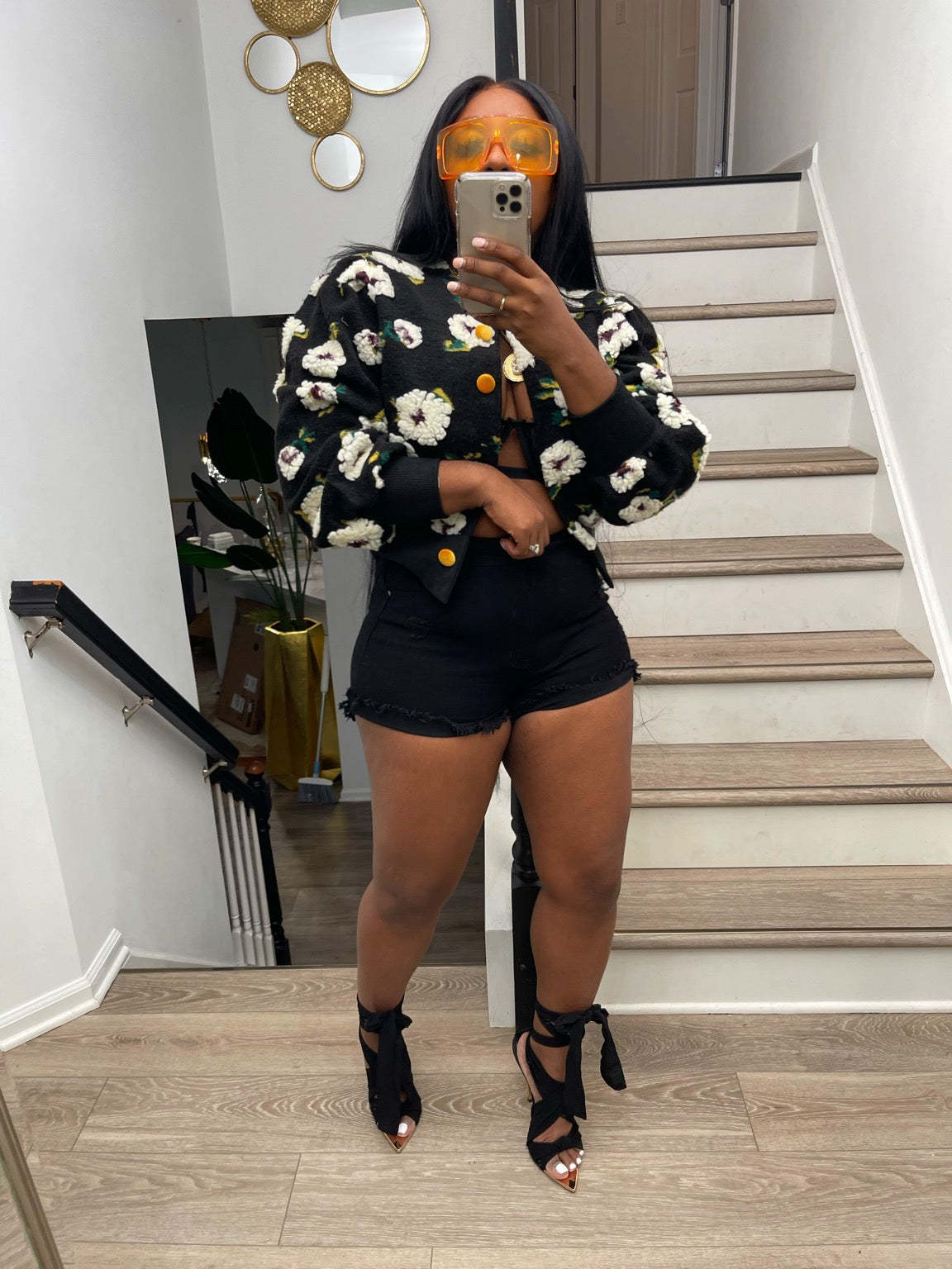 Autumn Winter Retro Three Dimensional Floral Loose Single Breasted Cardigan Short Coat Trend Women Clip 3D Rose