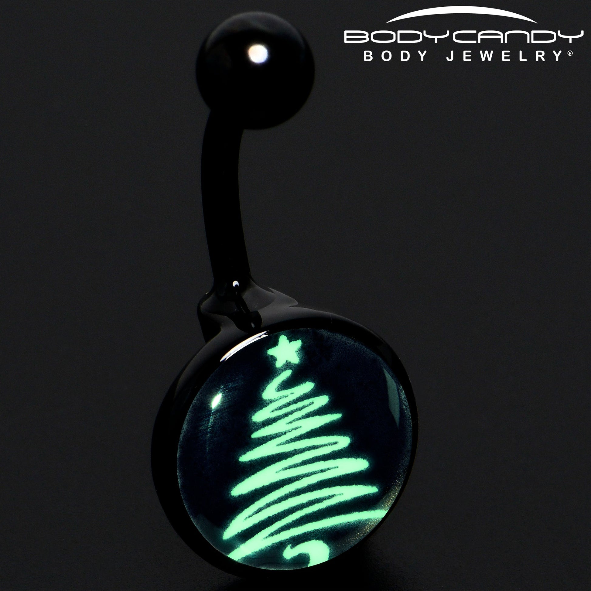 Black Glow in the Dark Holiday Christmas Tree Belly Ring