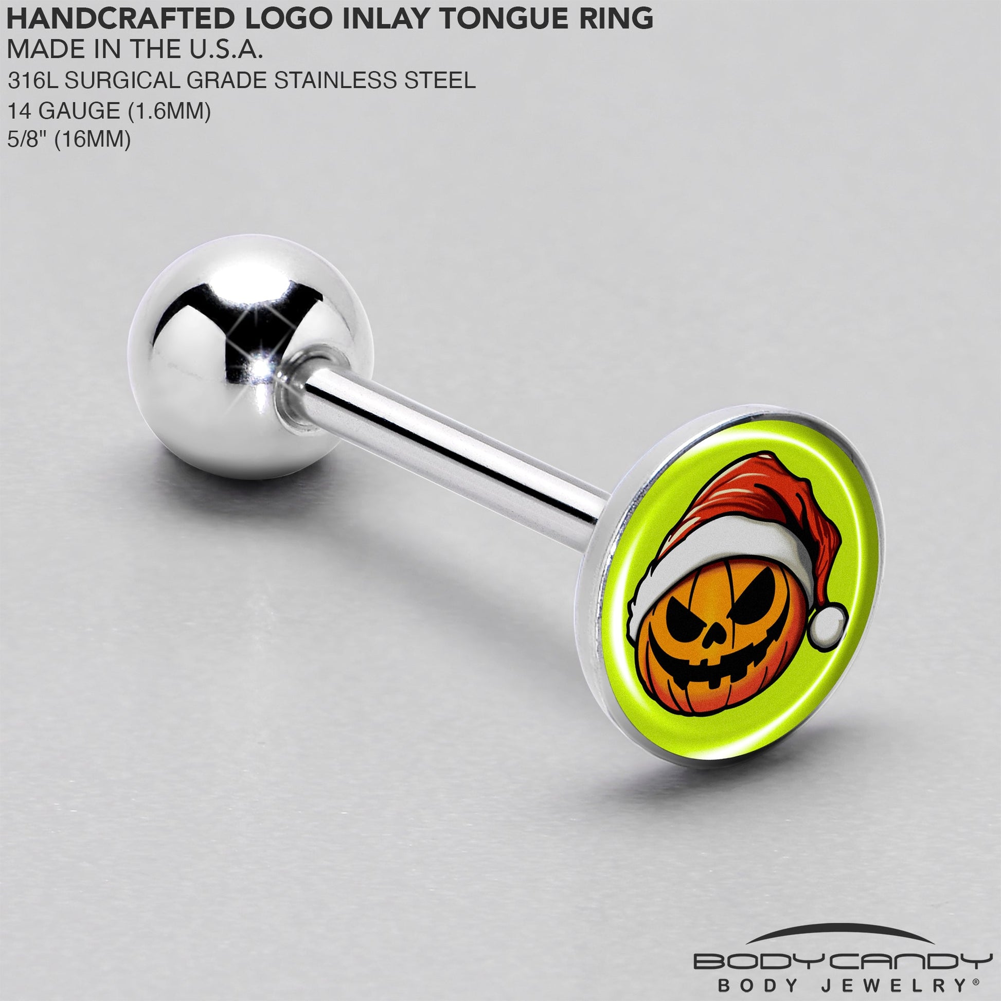 Celebrate the holidays with a unique twist! This 14-gauge tongue ring features an adorable pumpkin donning a Santa hat, blending festive cheer with fall vibes. Designed with artist hand-drawn artwork, this tongue piercing ring showcases intricate detailing that stands out. Crafted from high-quality, hypoallergenic materials, itü??s perfect for sensitive skin and comfortable for everyday wear. Each piece is hand-assembled in the USA, ensuring a touch of artisanal craftsmanship. Add this playful and stylish tongue jewelry to your collection and bring a little holiday magic to your look!