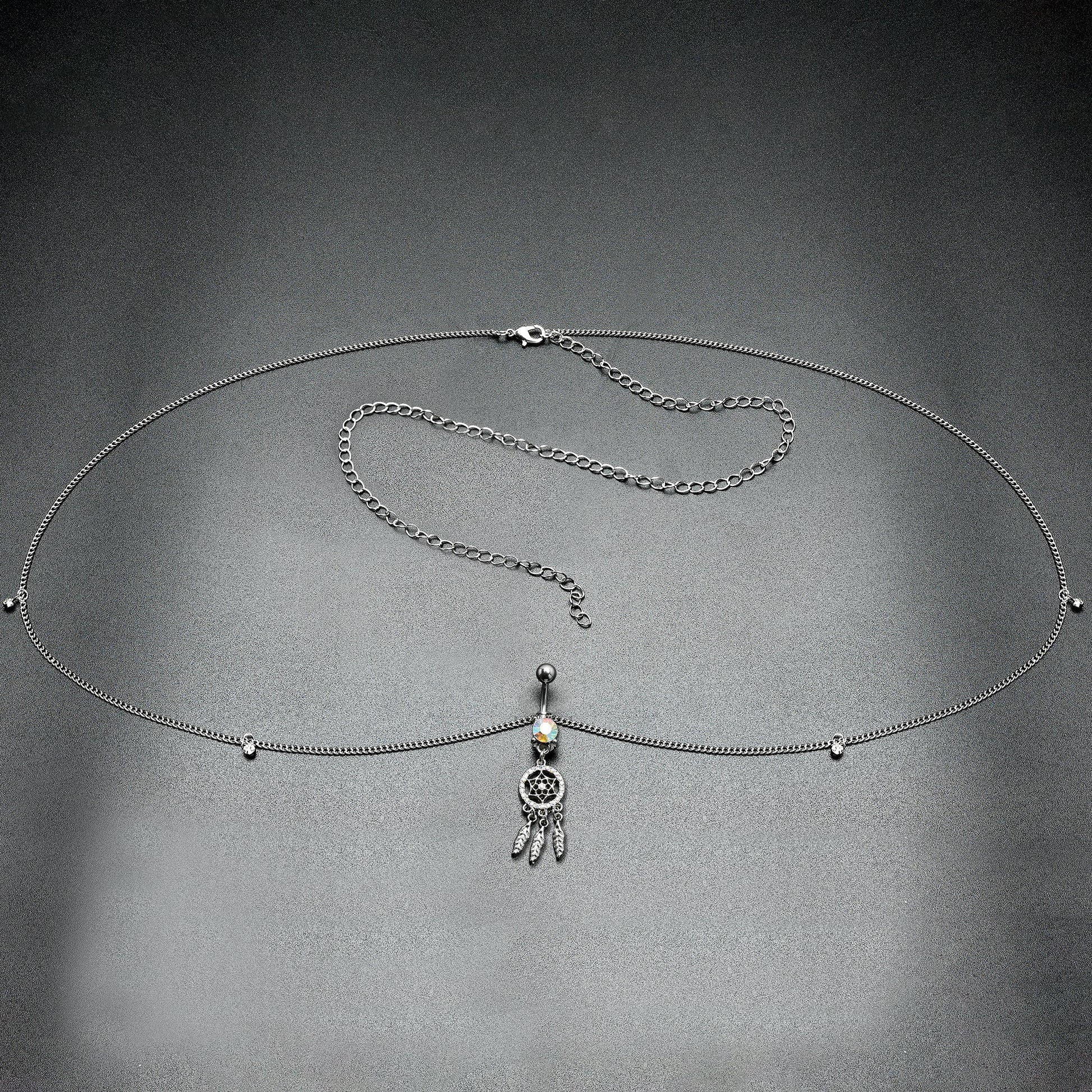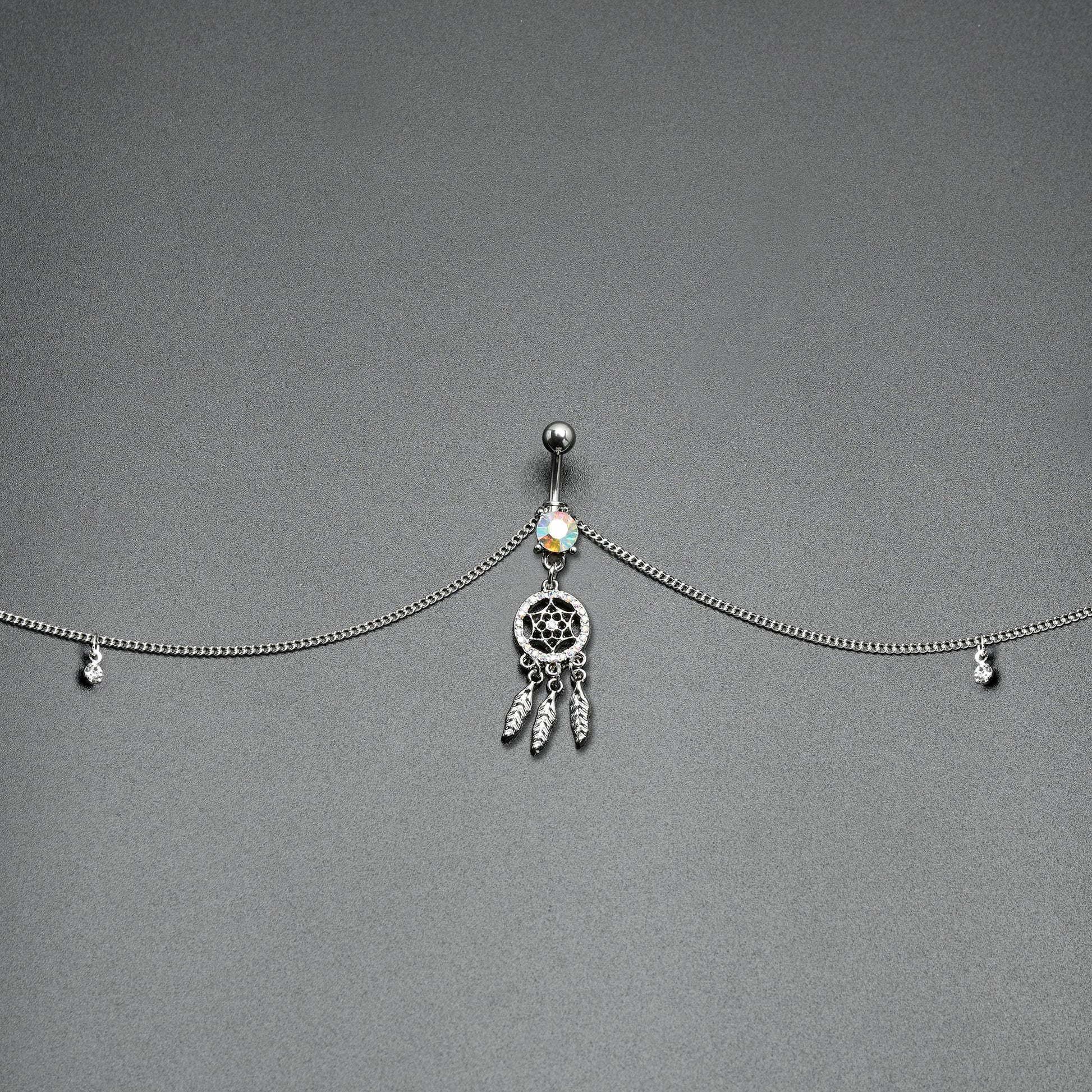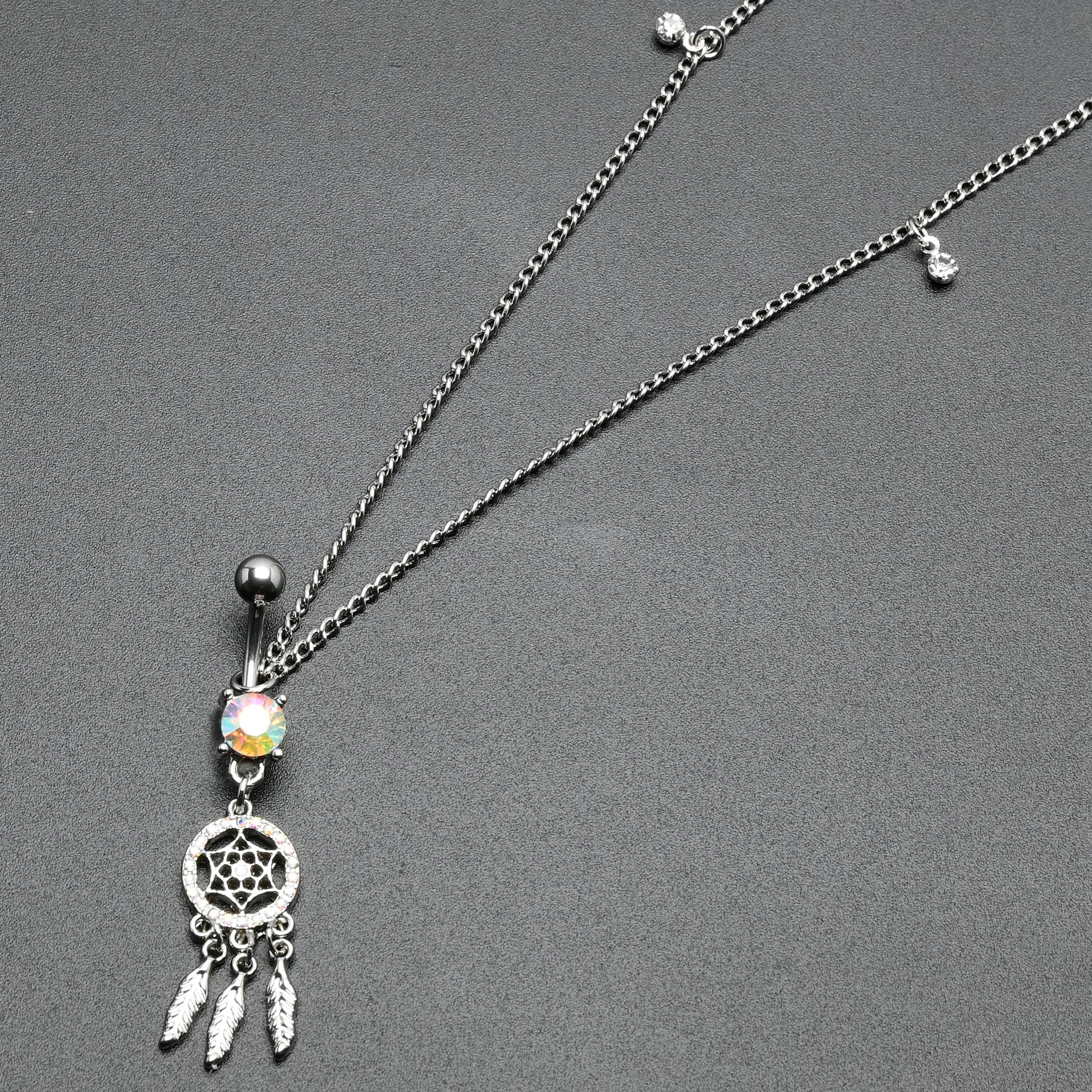 Clear Aurora Gem Southwest Dreamcatcher Dangle Belly Ring Belly Chain