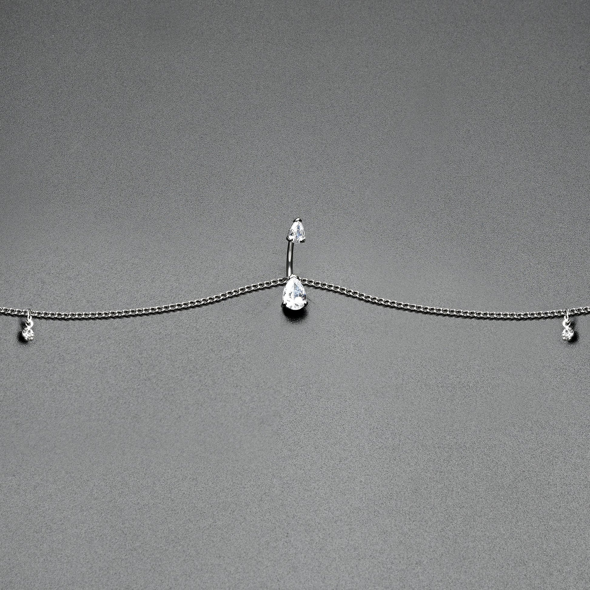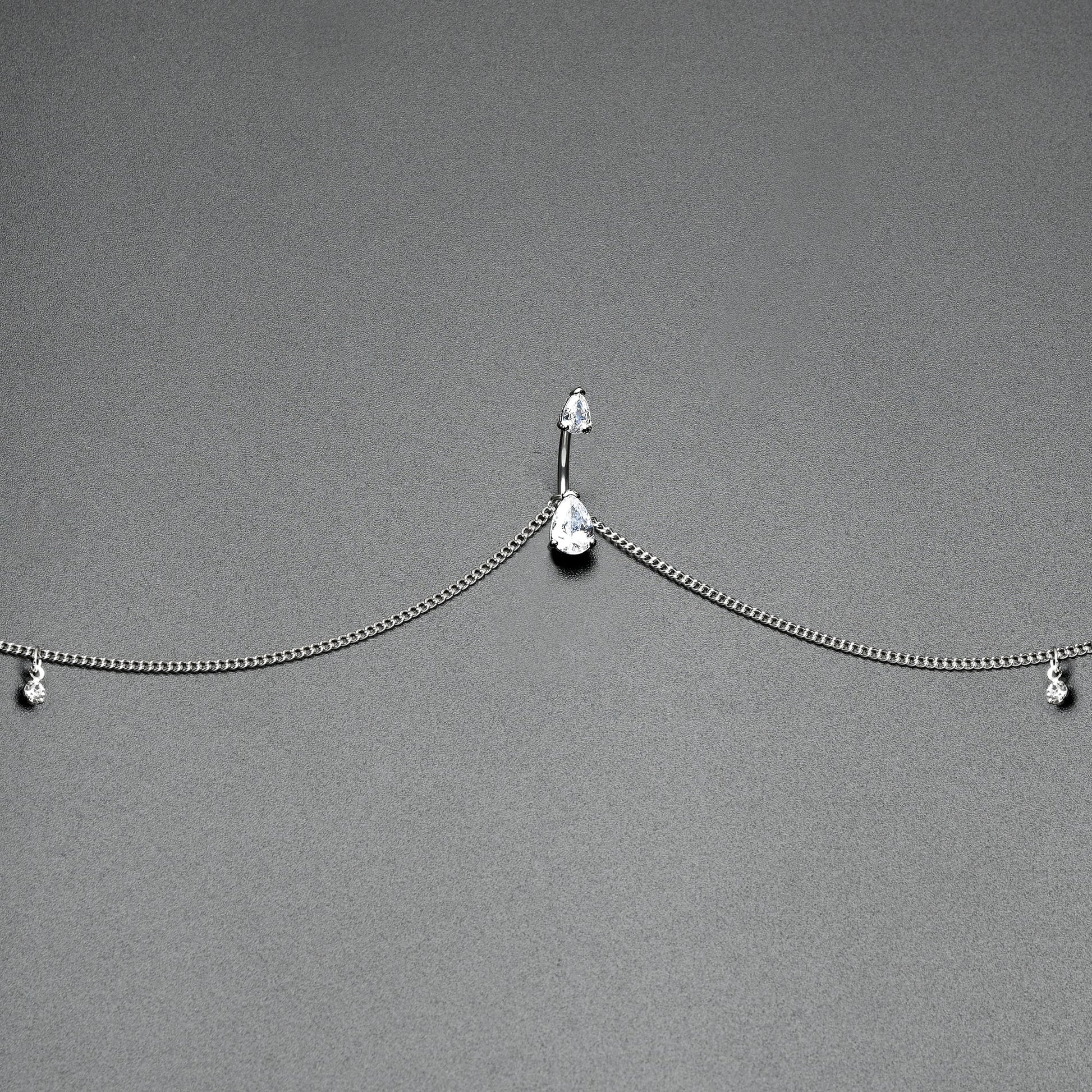 Clear Gem Double Drop Double Mount Belly Ring Belly Chain