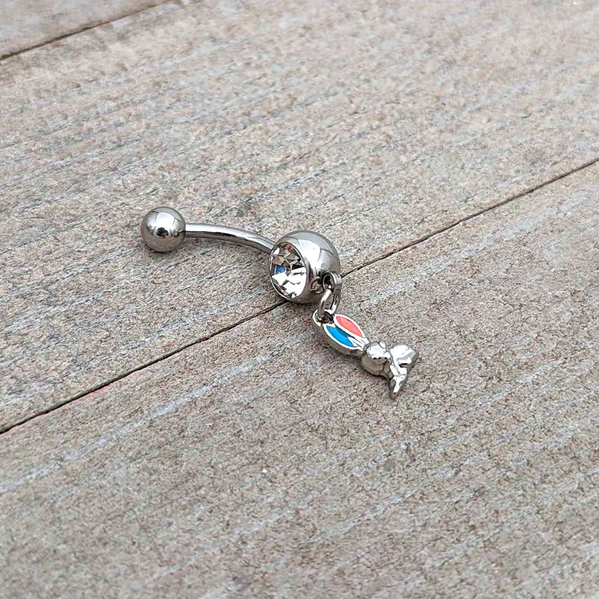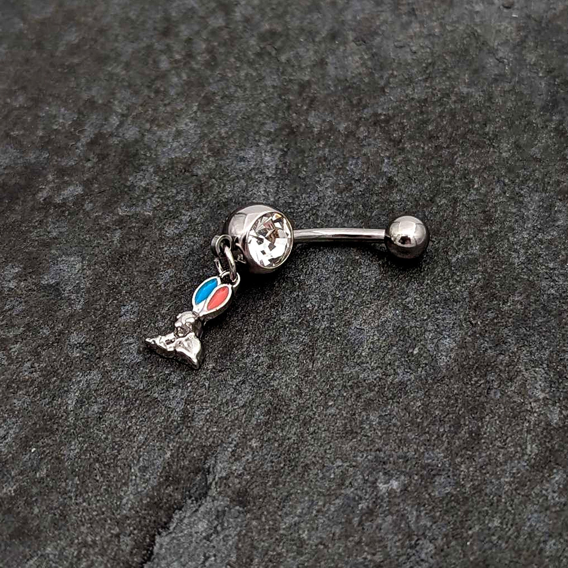 Clear Gem Easter Bunny Red Blue Ears Dangle Belly Ring