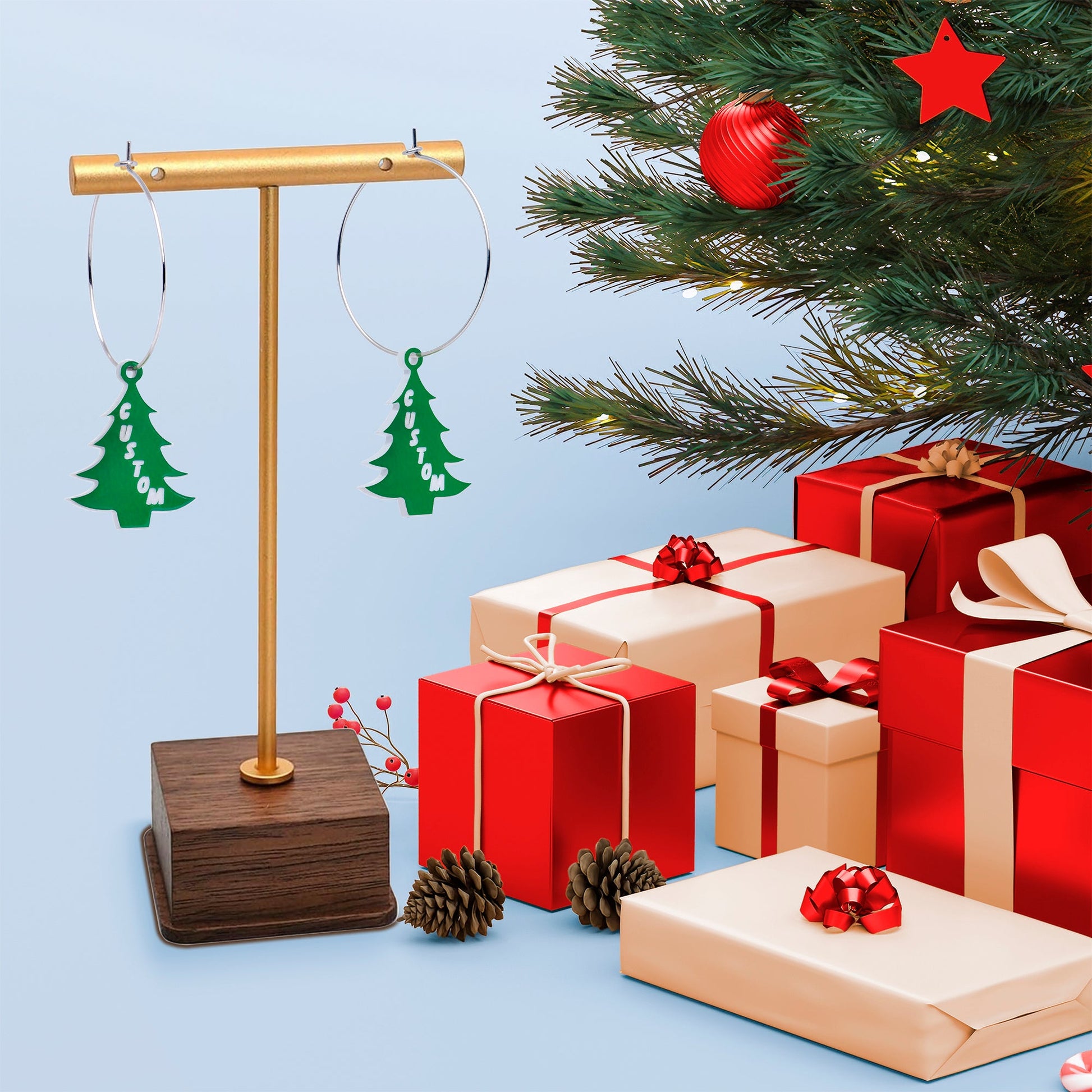 Custom Christmas Tree Personalized Hoop Earrings