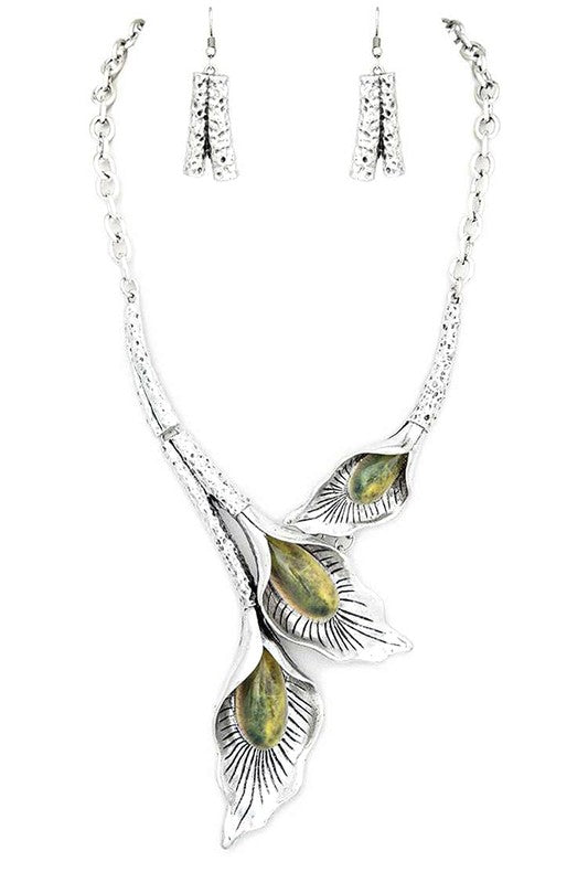 Flower Metal Statement Necklace Set
