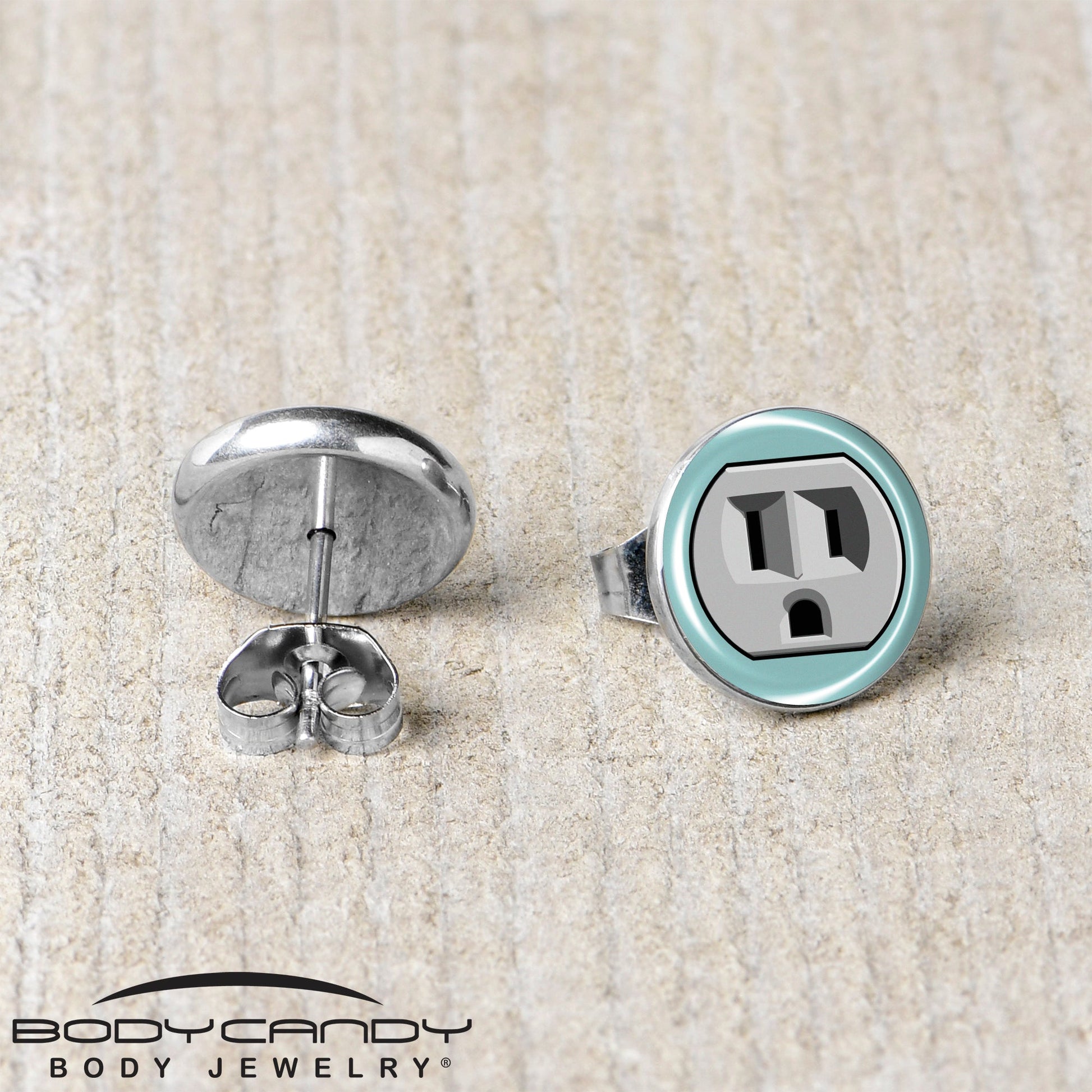 Hypoallergenic jewelry for sensitive skin.Frowning Plug Outlet Stud Earrings