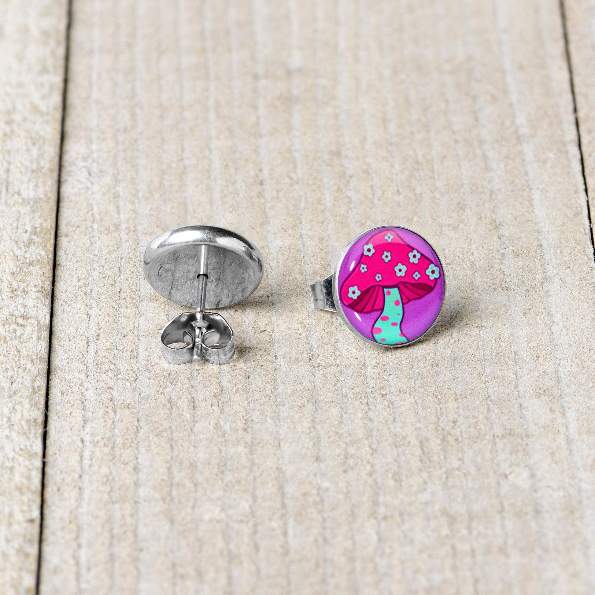 Hypoallergenic jewelry for sensitive skin.Funky Floral Mushroom Stud Earrings