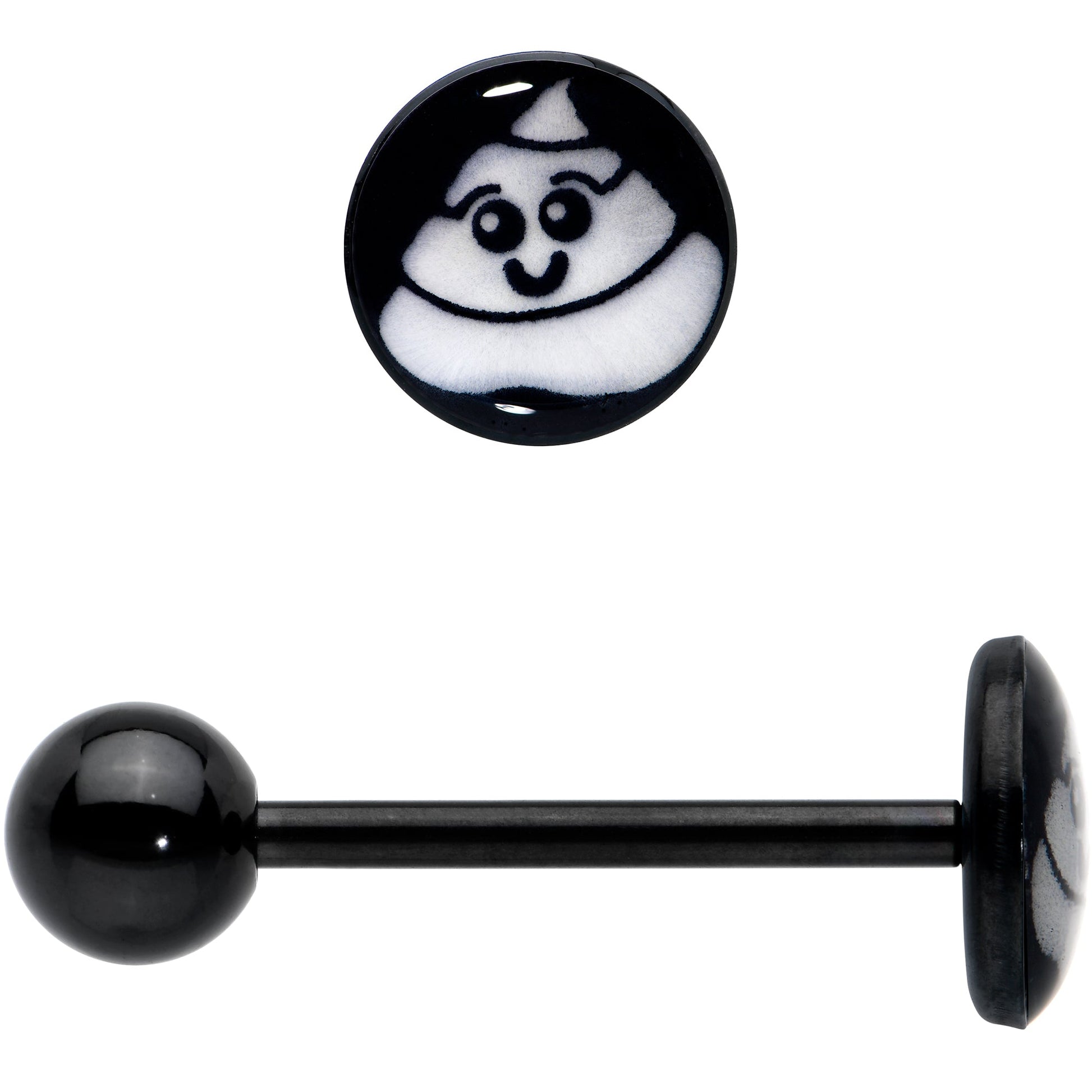Lighten up the mood with this fun Pile of Poo tongue ring with its cartoon like eyes and big friendly smile. This tongue piercing features an anodized straight barbell and fun glow in the dark logo inlay.