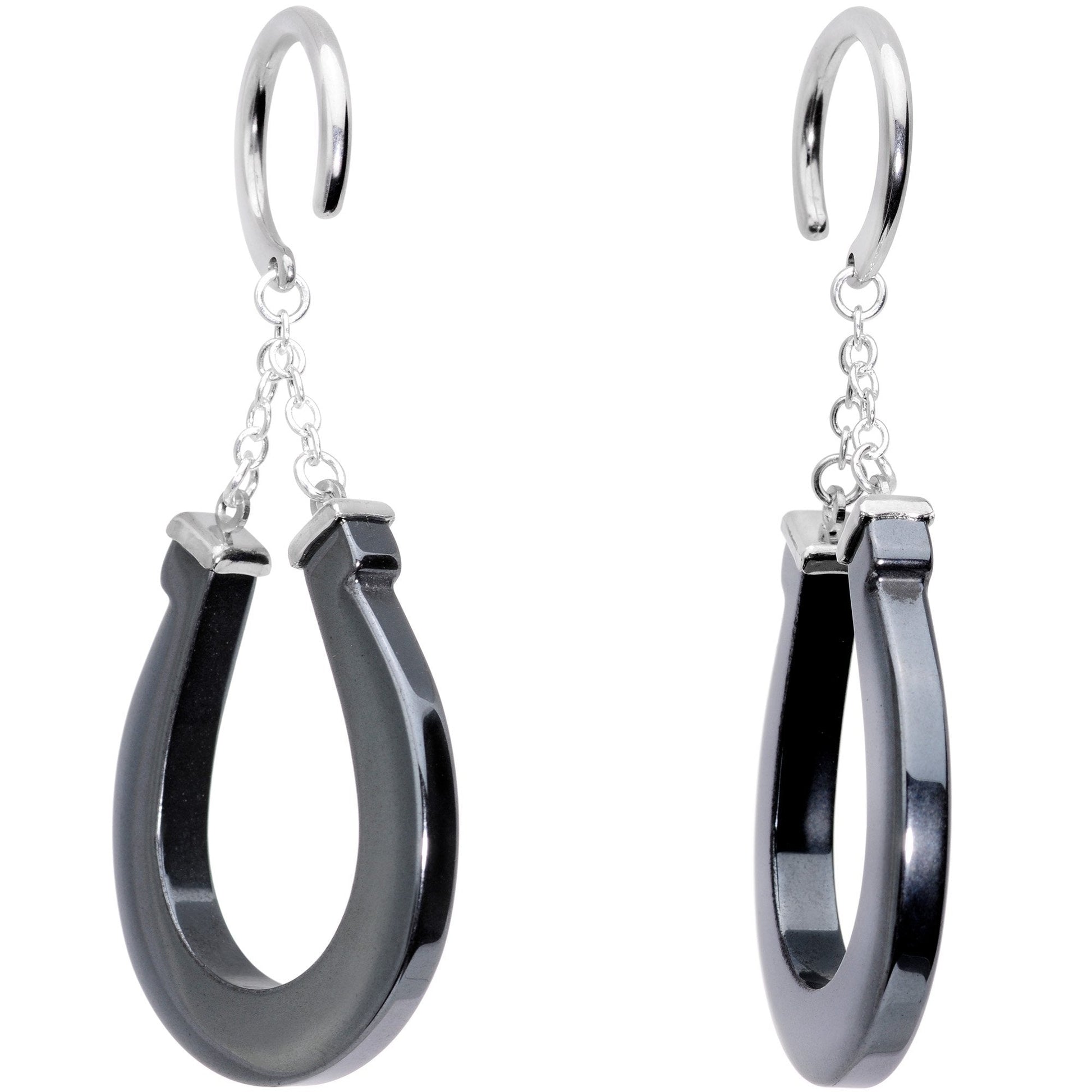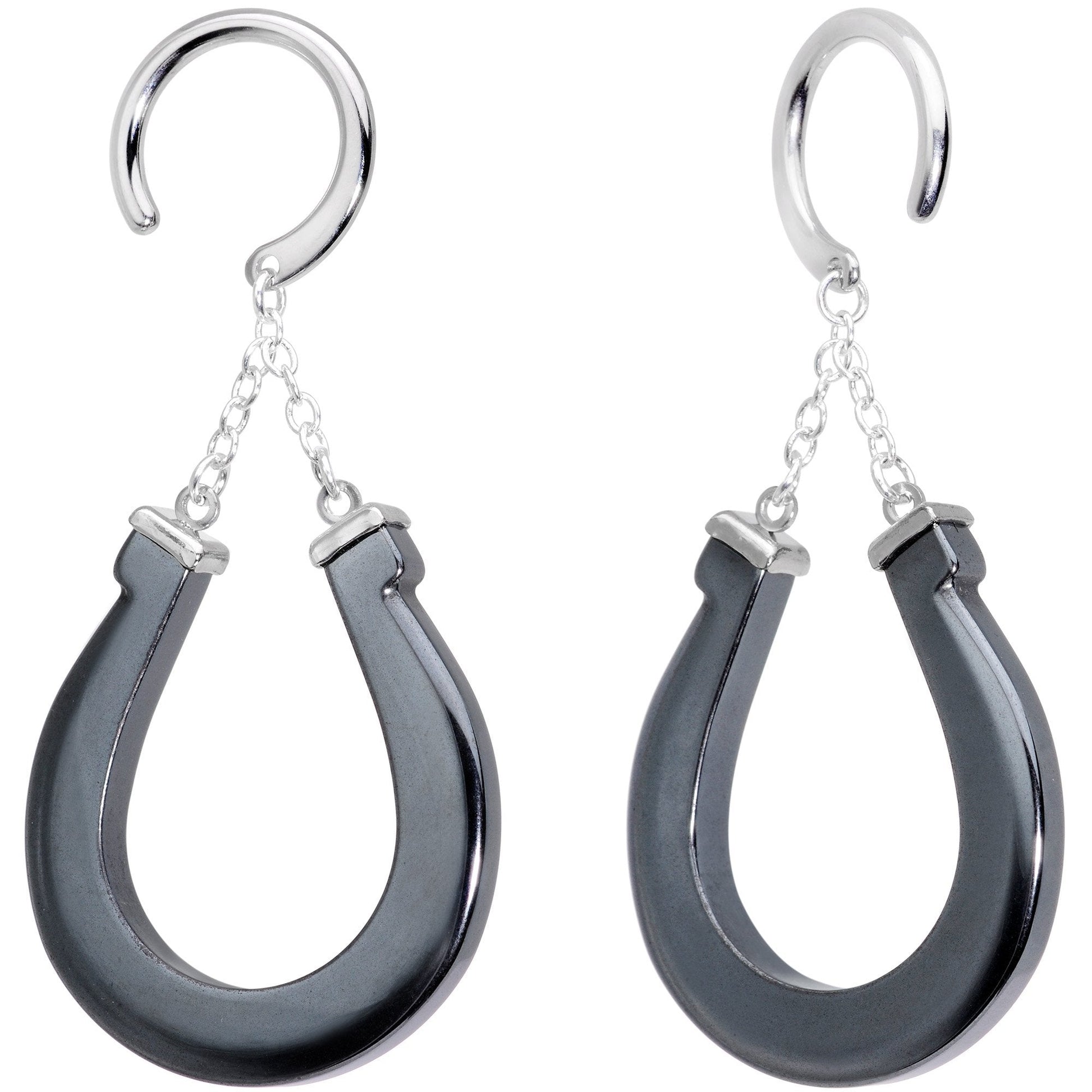 Handcrafted Steel Black Hematite Horseshoe Chain Ear Weights