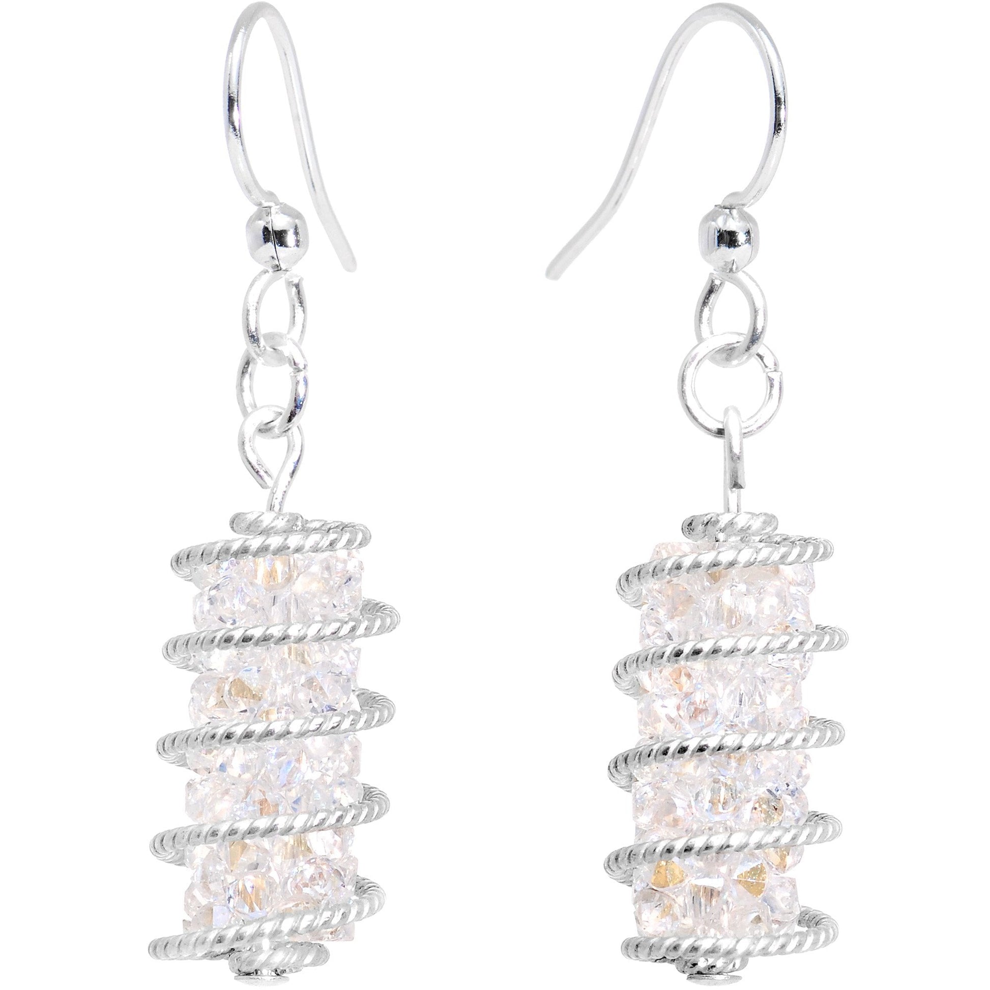 Handmade White Wrap Fishhook Earrings Created with Crystals