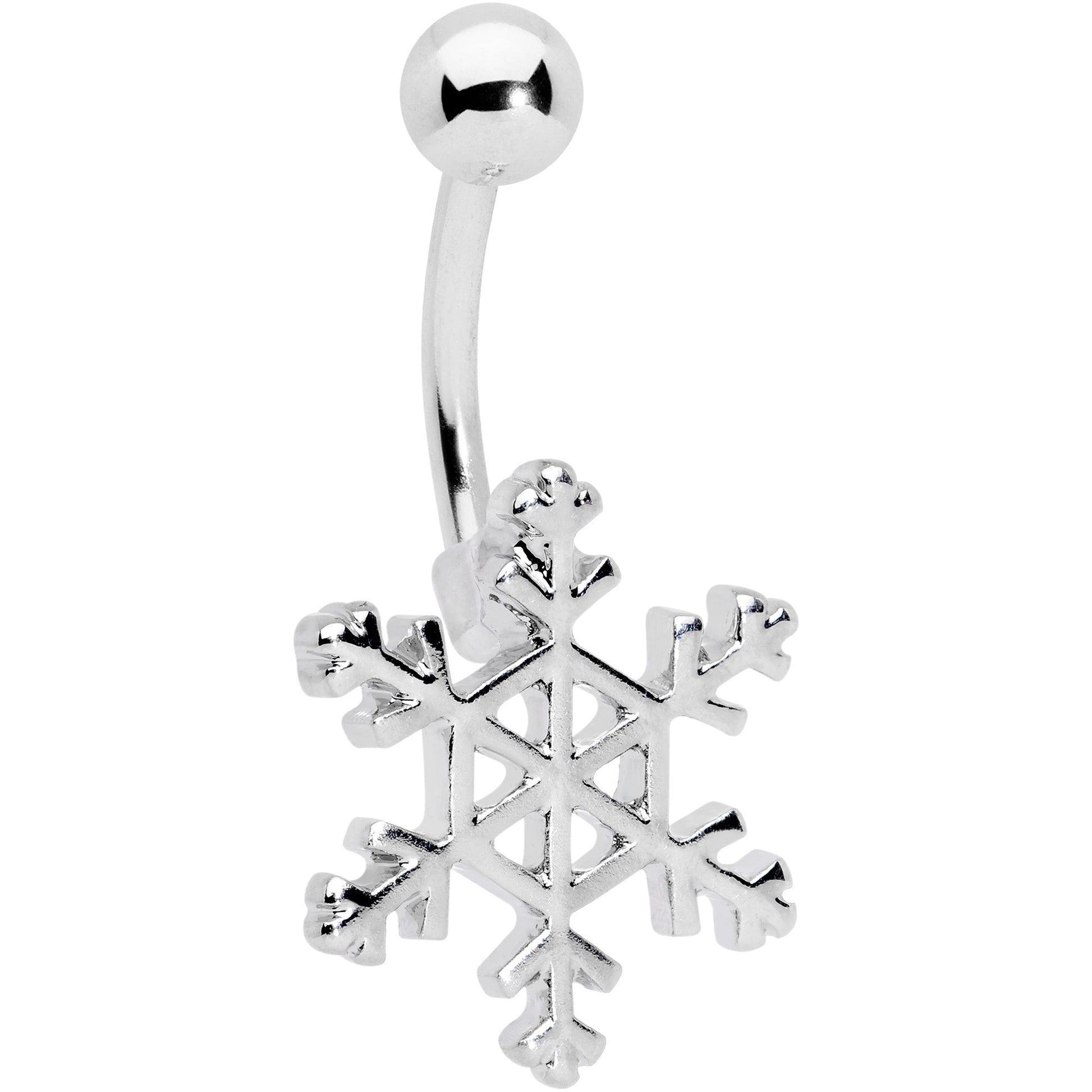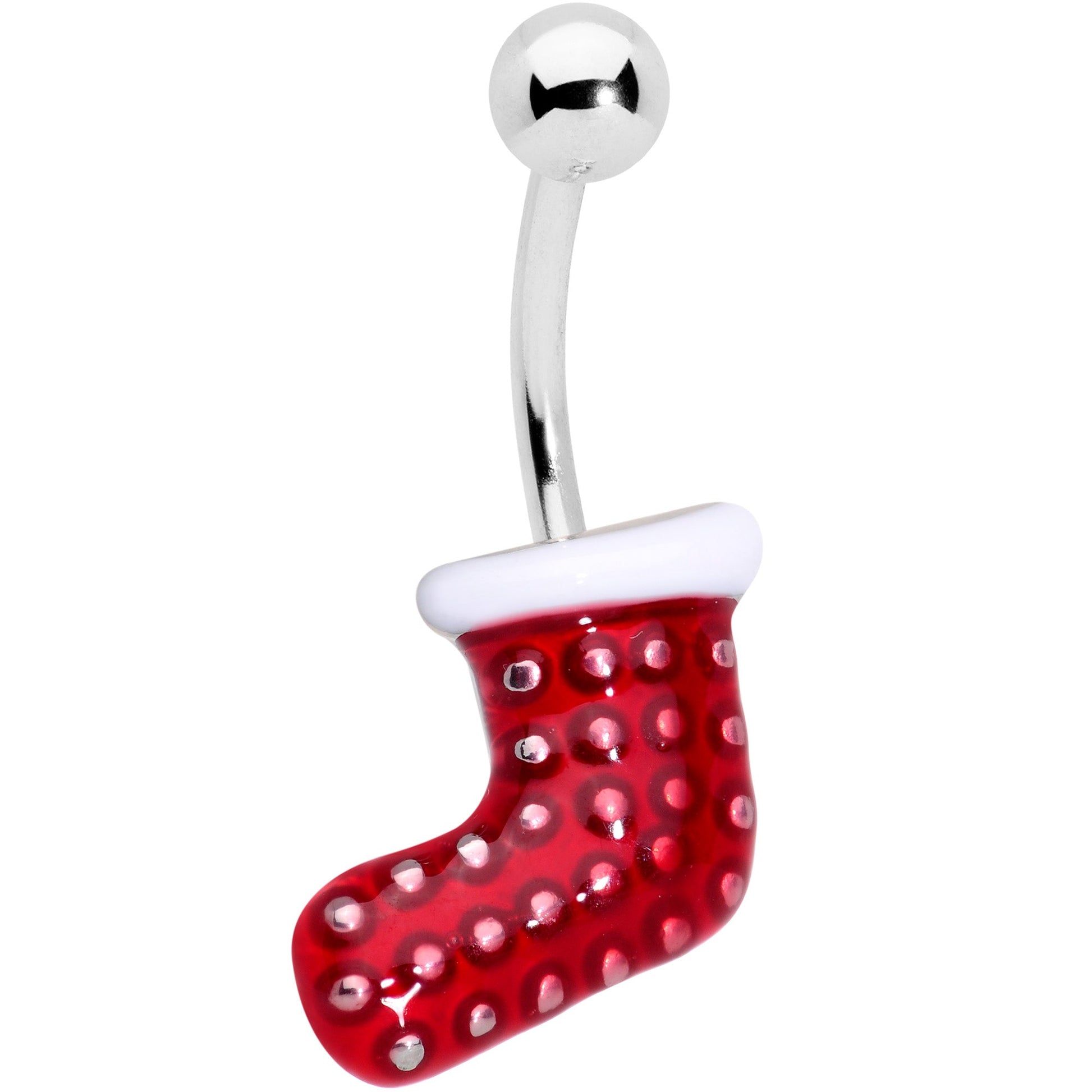 All you'll need for Christmas style is in this set of 14 gauge navel rings! They're made with 3/8" durable 316L surgical grade stainless steel curved barbells with 5mm top ball ends. One features an elegant and iconic silver-tone snowflake bottom end for a look that's simple but full of style. The second features a bottom end shaped like a Christmas stocking in red, with dotted pattern that's fun and festive. The third one features a bottom end of a mitten, in cheery dotted red and embellished with a white cuff. You'll be ready to let it snow when you have these winter-themed belly button rings! Sold as a set of three.Specifications