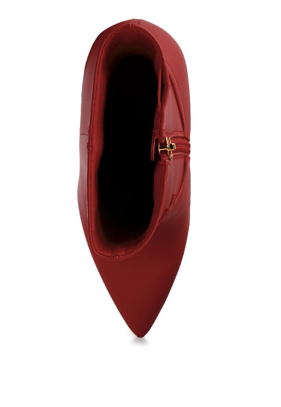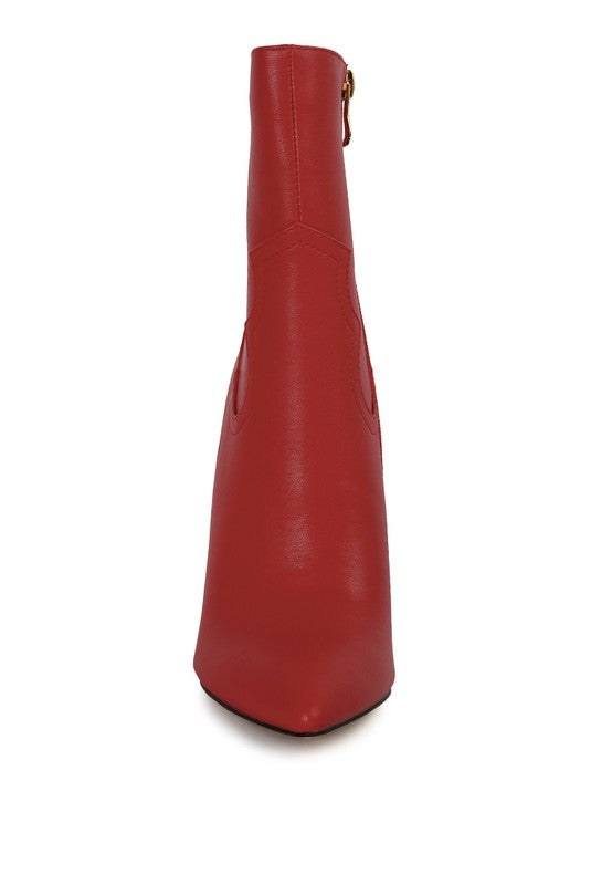 Beat the winter party in these cowgirl booties. The high heeled ankle boots with patch detail looks impressive. It has pointed toe which makes it look sharp. Comes with side zipper opening which makes it easy to wear.