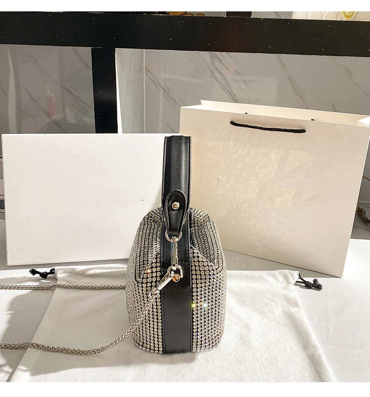 Make a dazzling entrance with our Luxury Designer Brand Silver Clutch Purse! This exquisite women's evening banquet bag is adorned with shimmering crystal rhinestones, functioning as a versatile shoulder bag and a chic handbag.