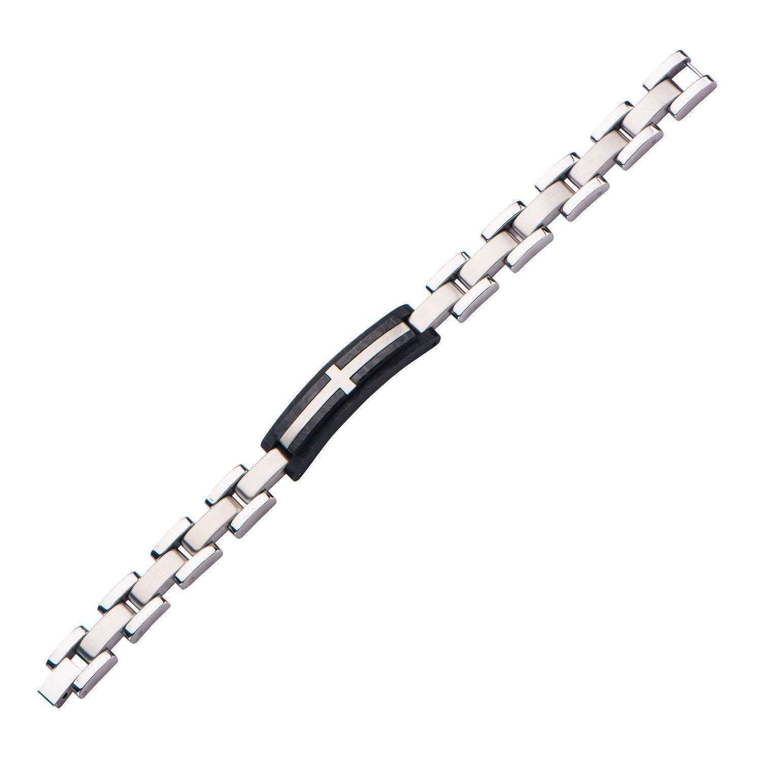 Hypoallergenic jewelry for sensitive skinMens Stainless Steel Cross Inlayed in Solid Carbon Graphite Link Bracelet