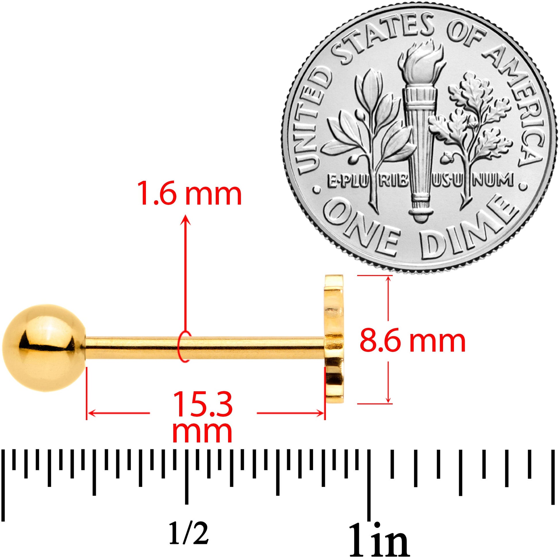 14 Gauge (1.6mm), 5/8" (16mm), 316L Surgical Grade Stainless Steel Barbell, 5mm Bottom Ball End, Sold as a Set of 4